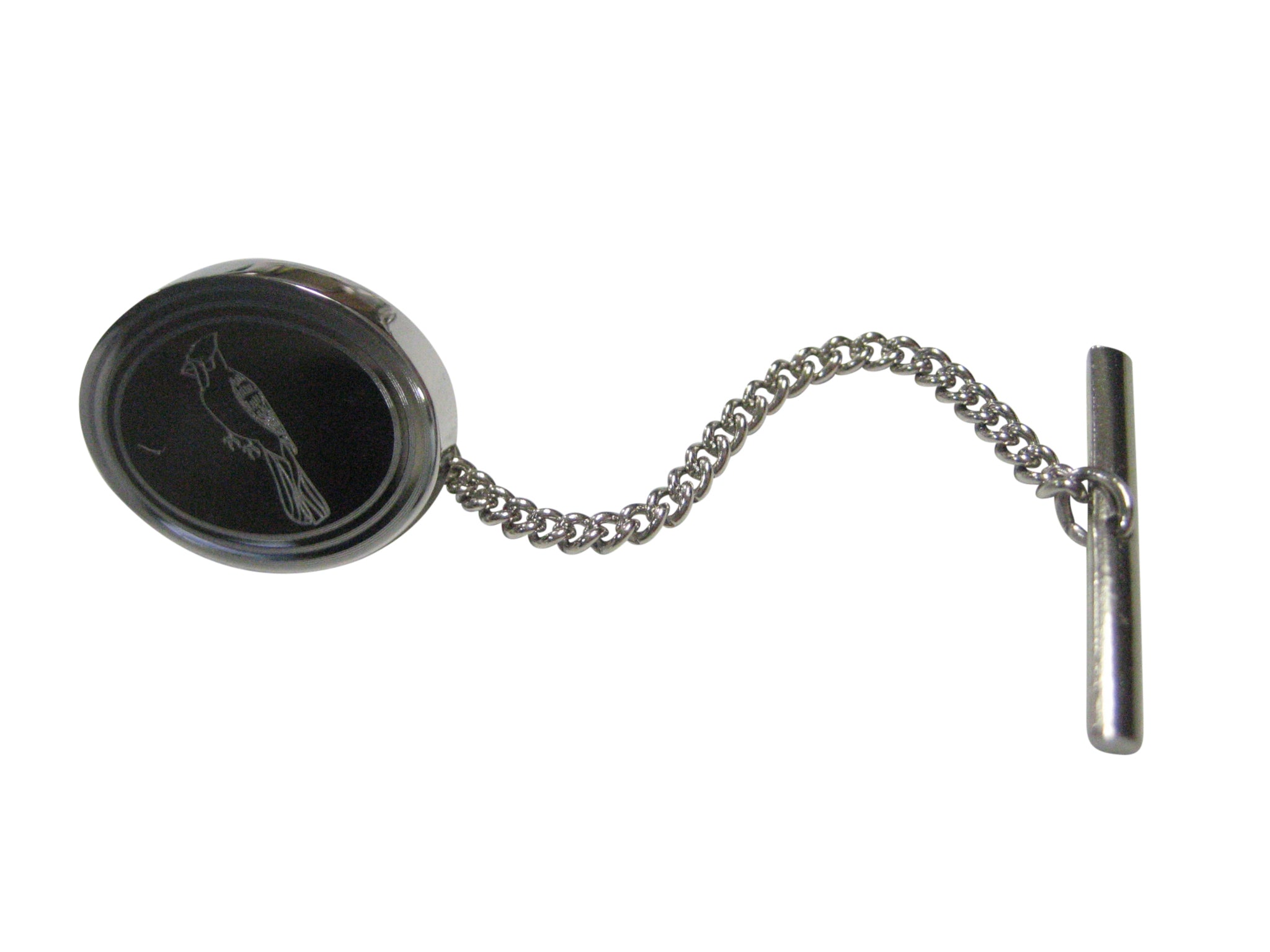 Silver Toned Oval Etched Blue Jay Bird Tie Tack