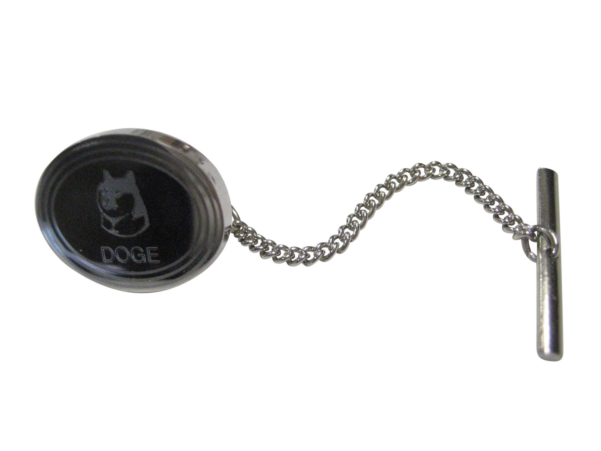 Silver Toned Oval Etched Doge Coin Cryptocurrency Blockchain With Shiba Dog Tie Tack