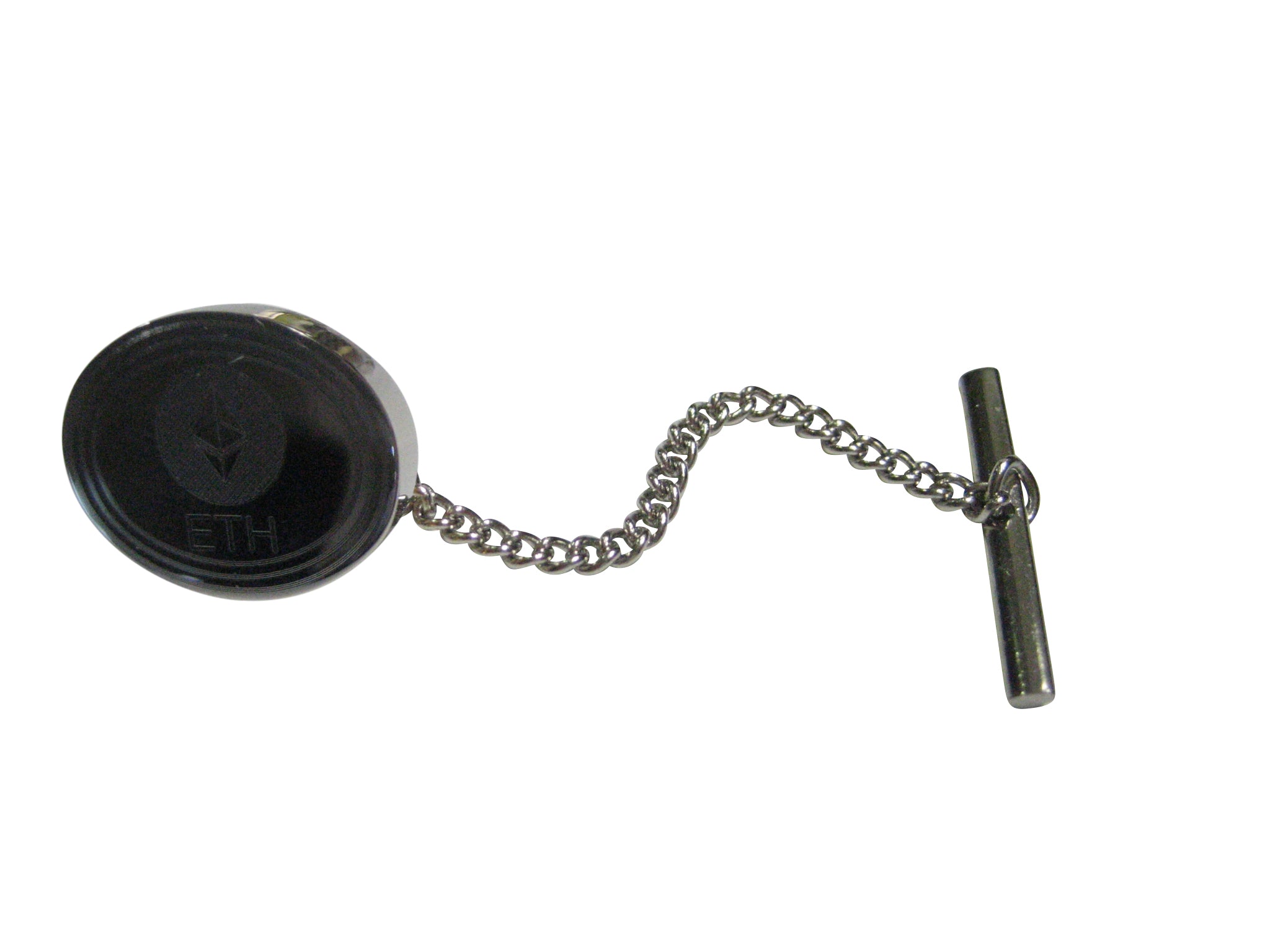Silver Toned Oval Etched Ethereum Coin Cryptocurrency Blockchain Tie Tack