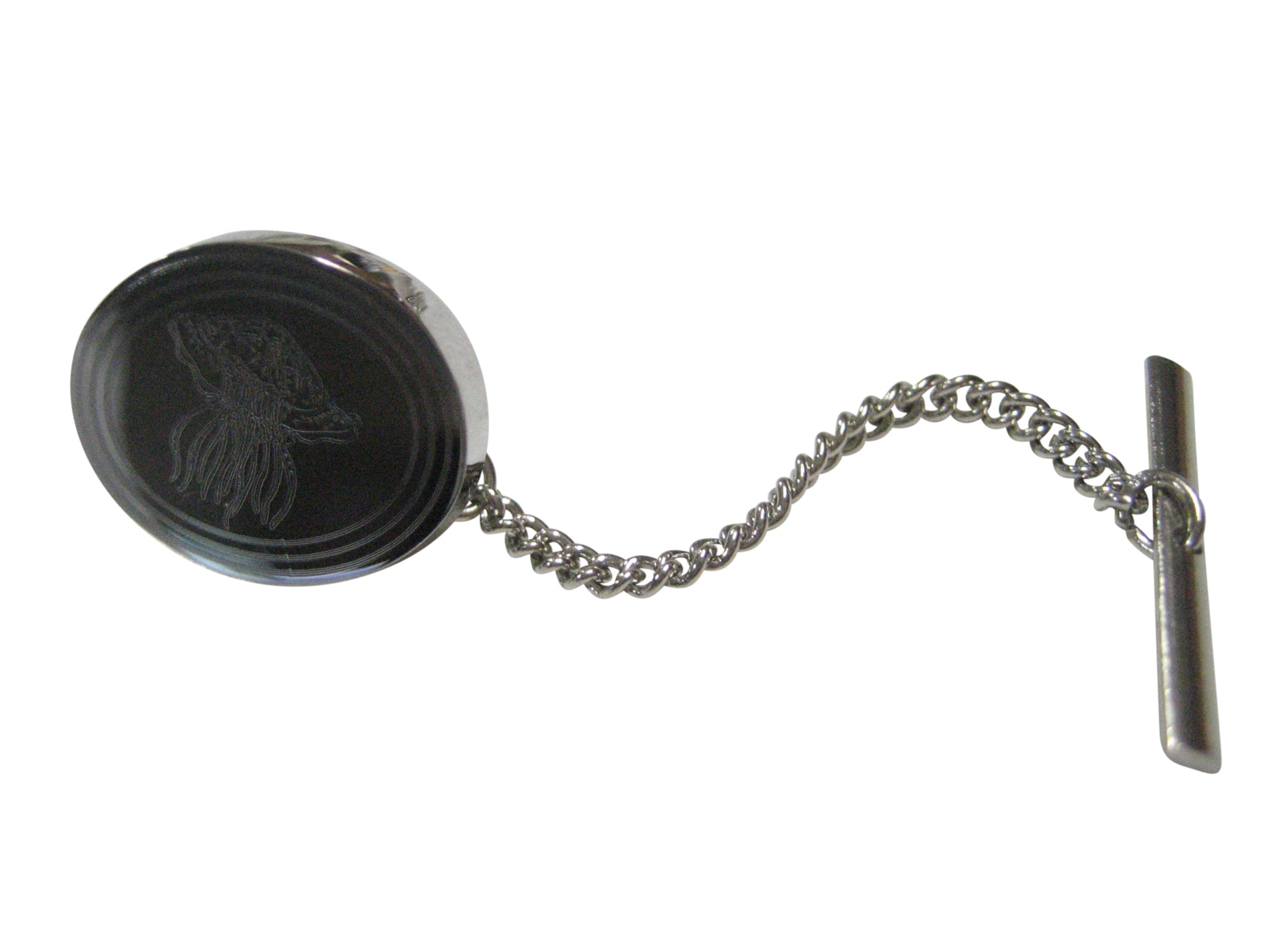 Silver Toned Oval Etched Jellyfish Tie Tack
