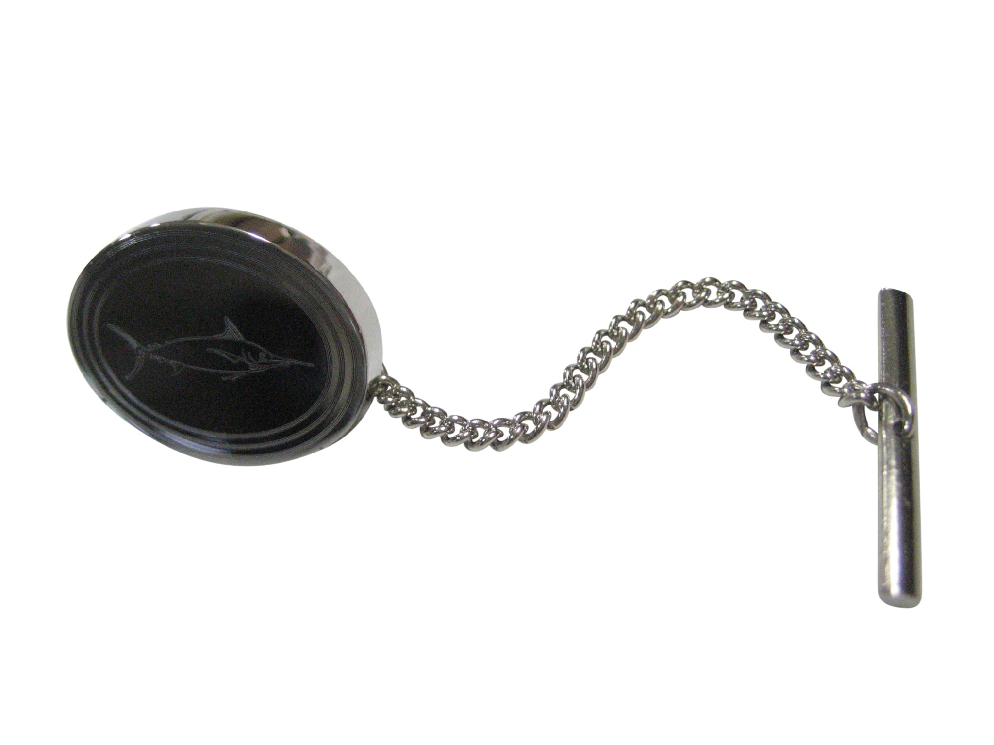 Silver Toned Oval Etched Marlin Sailfish Tie Tack