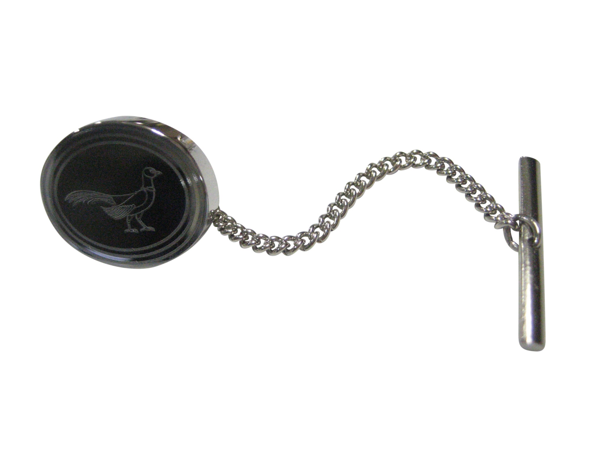 Silver Toned Oval Etched Pheasant Bird Tie Tack