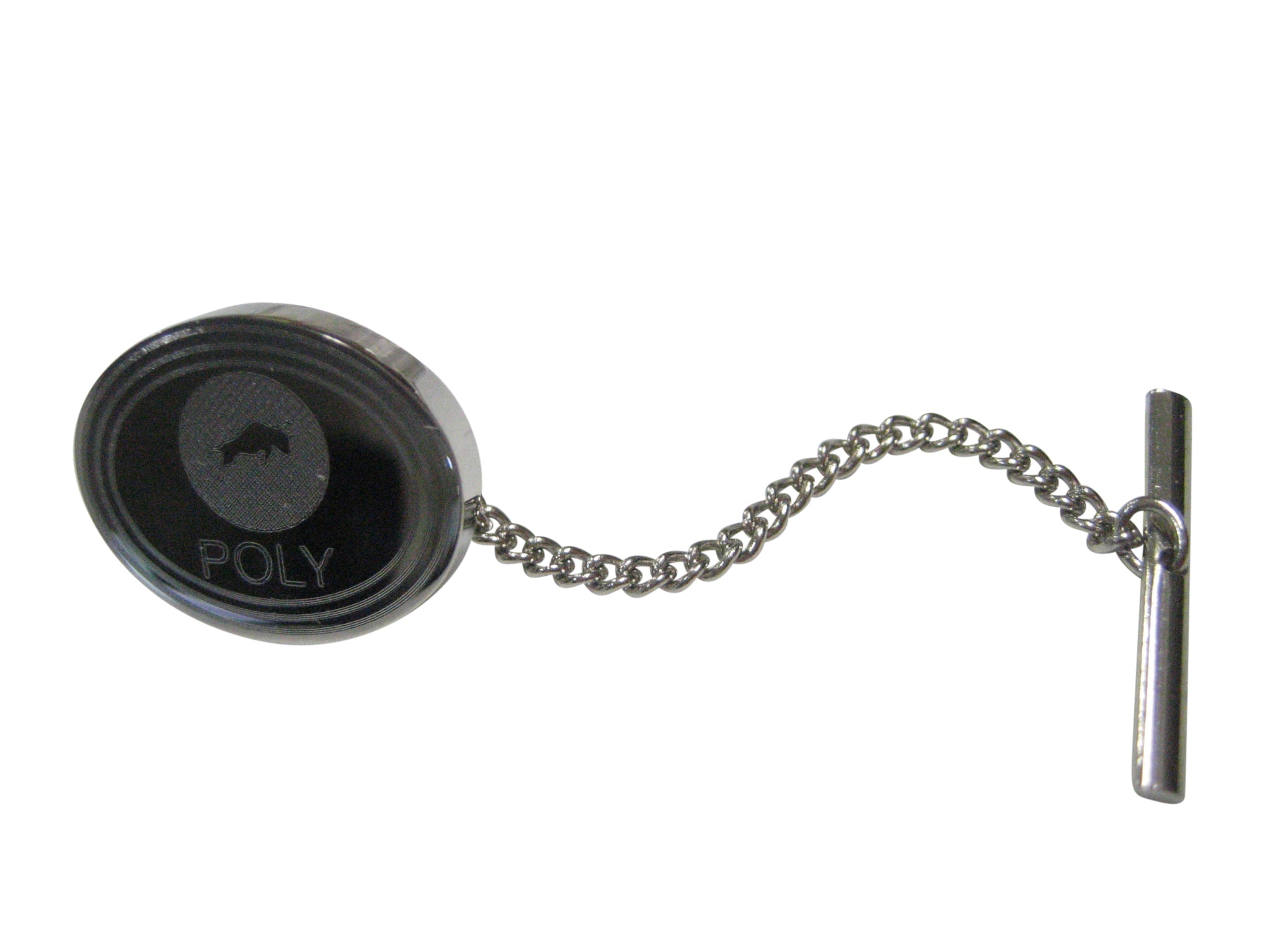 Silver Toned Oval Etched Polymath Coin POLY Cryptocurrency Blockchain Tie Tack