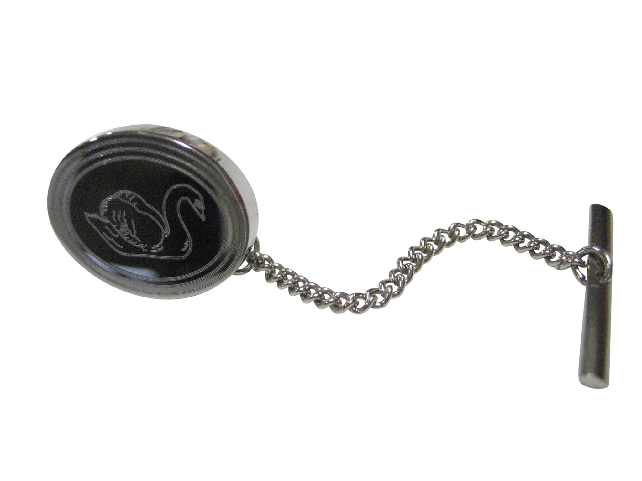 Silver Toned Oval Etched Swan Bird Tie Tack