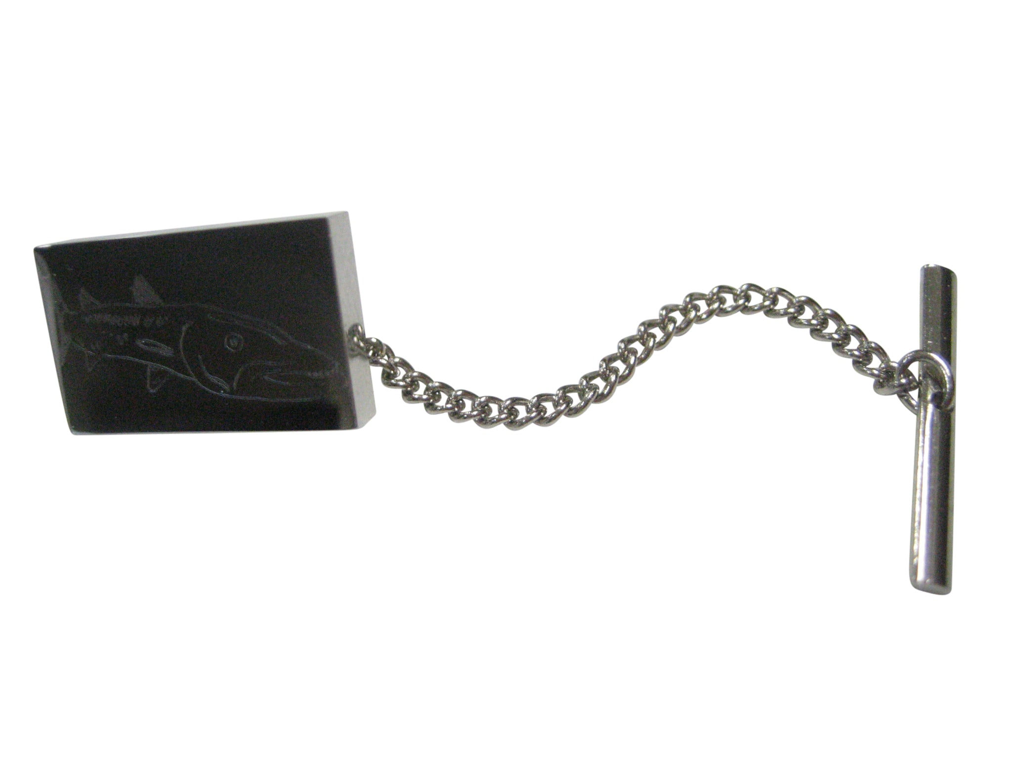 Silver Toned Rectangular Etched Barracuda Fish Tie Tack
