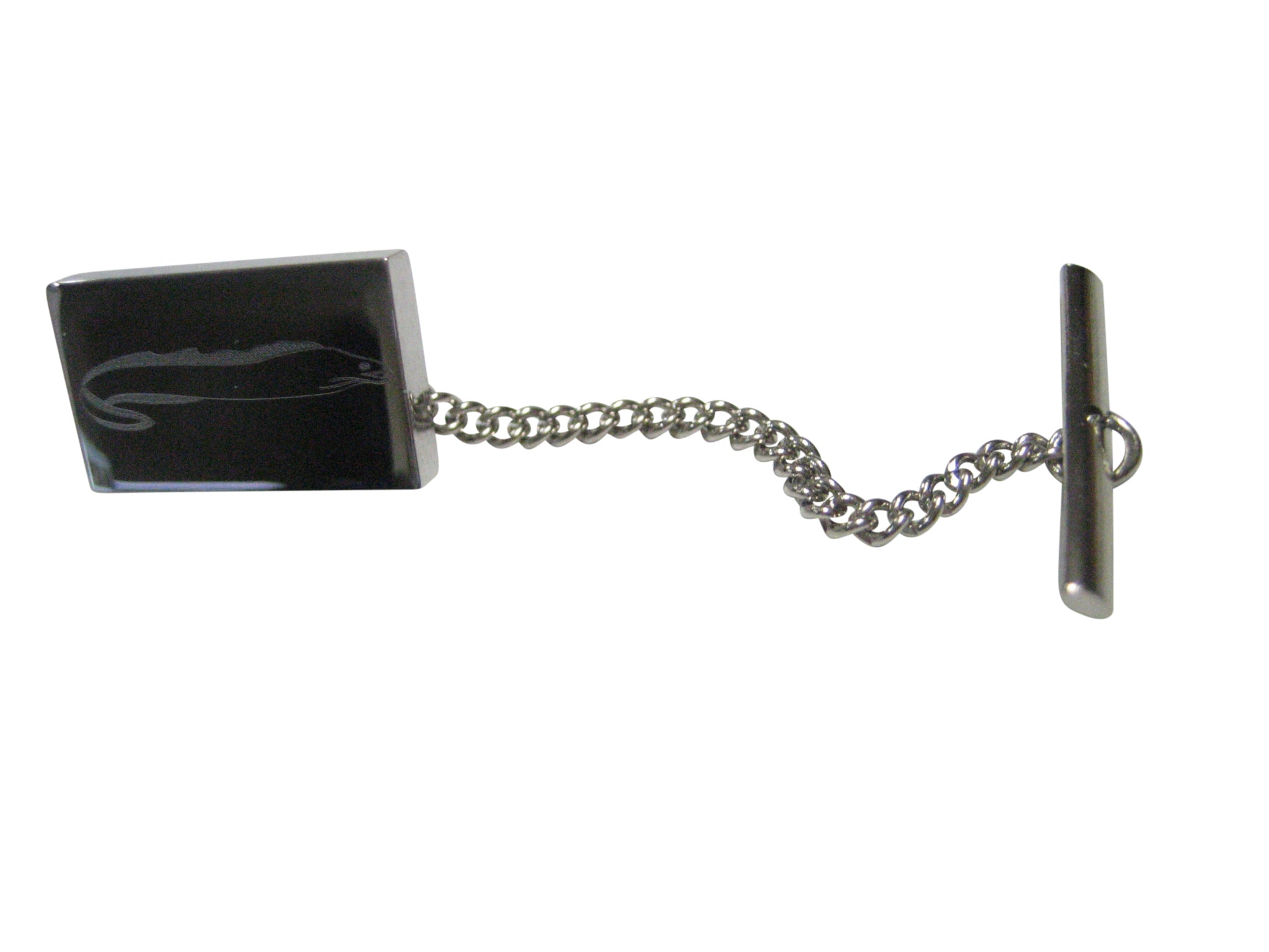 Silver Toned Rectangular Etched Moray Eel Fish Tie Tack