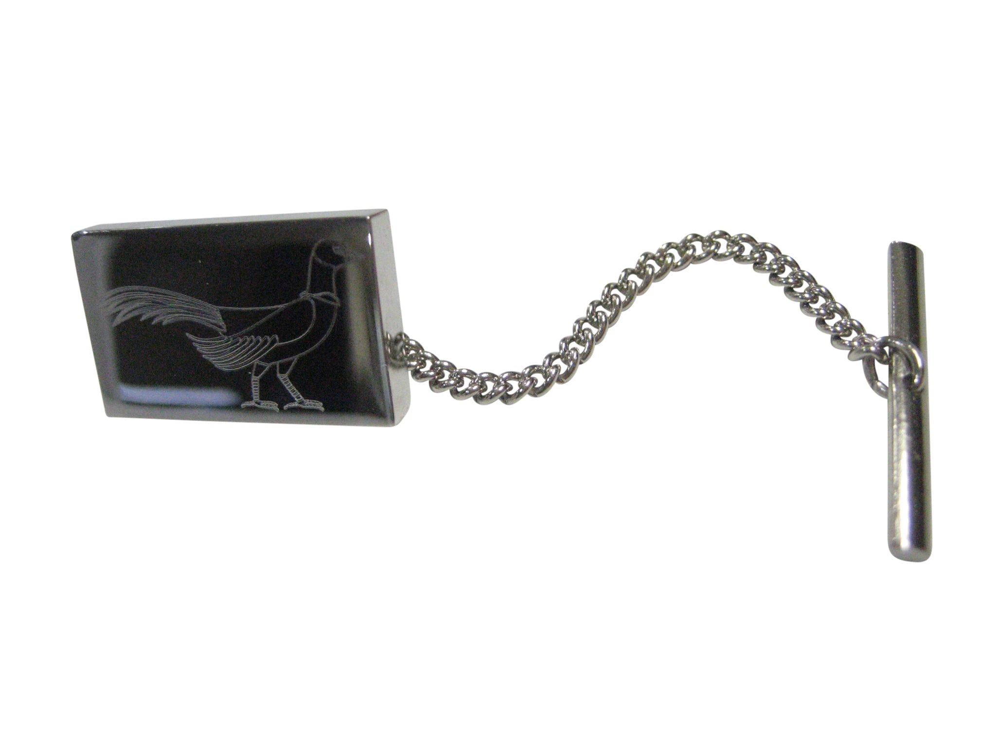 Silver Toned Rectangular Etched Pheasant Bird Tie Tack