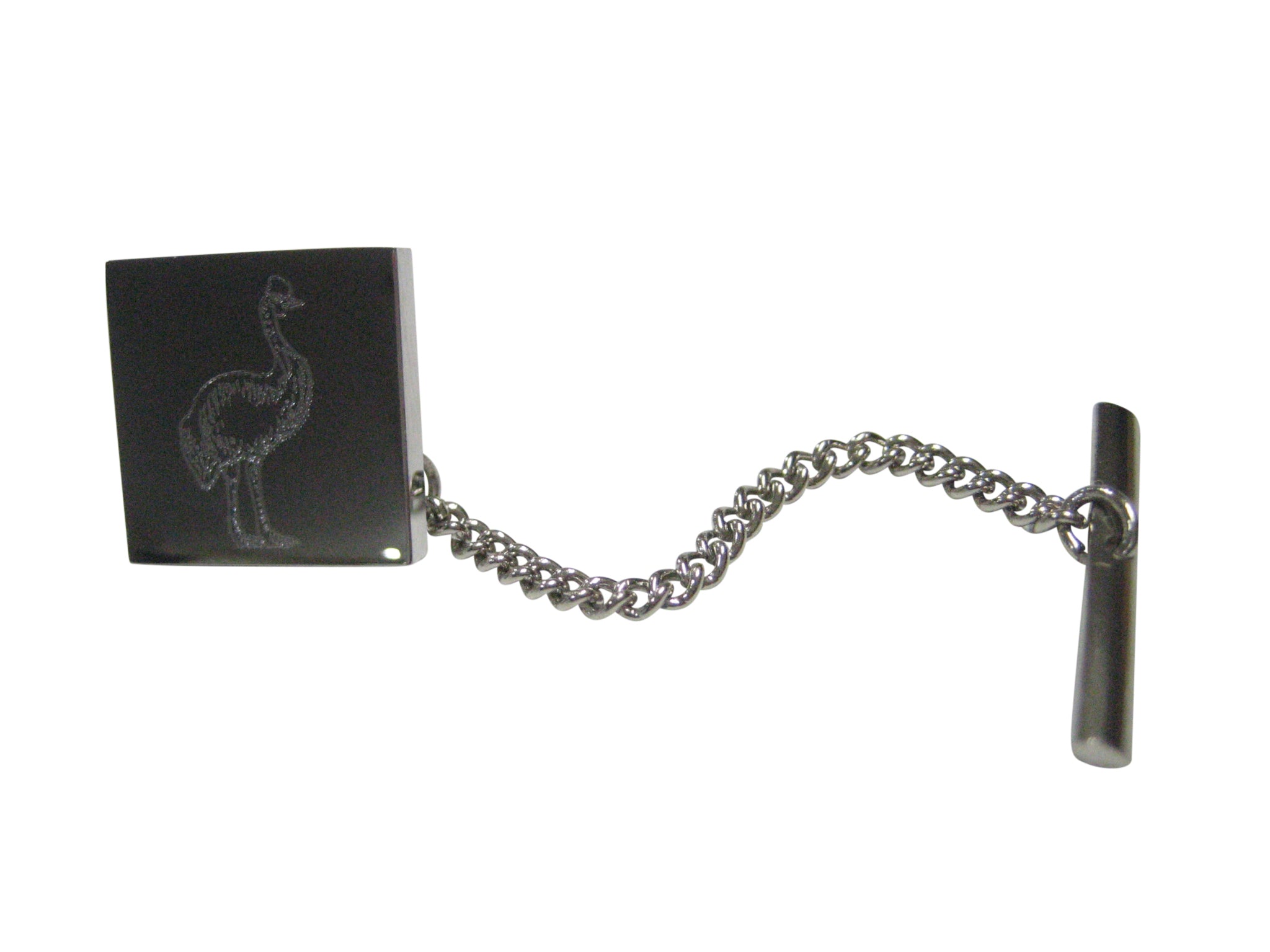 Silver Toned Square Etched Cassowary Bird Tie Tack