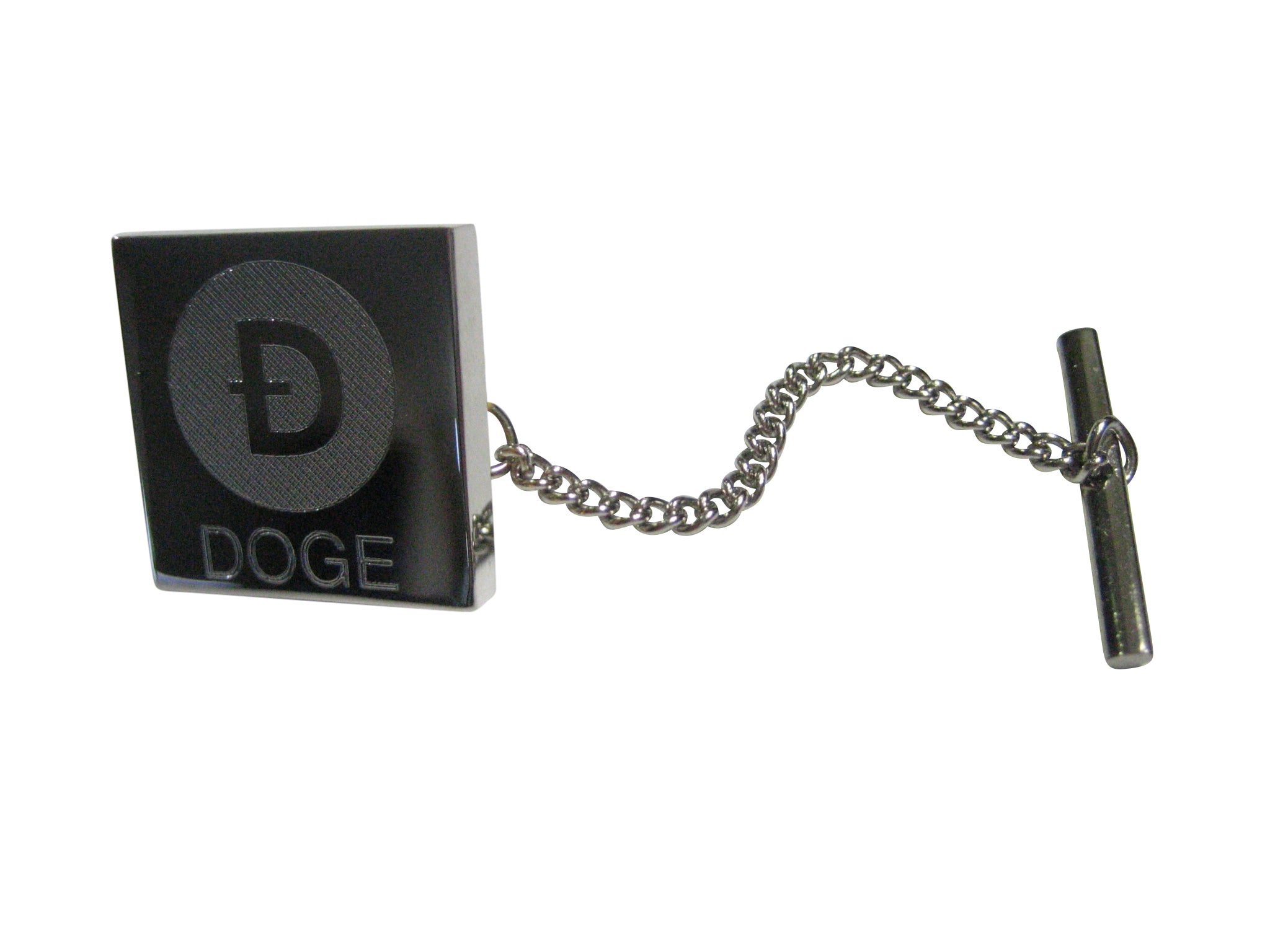 Silver Toned Square Etched Doge Coin Cryptocurrency Blockchain Tie Tack