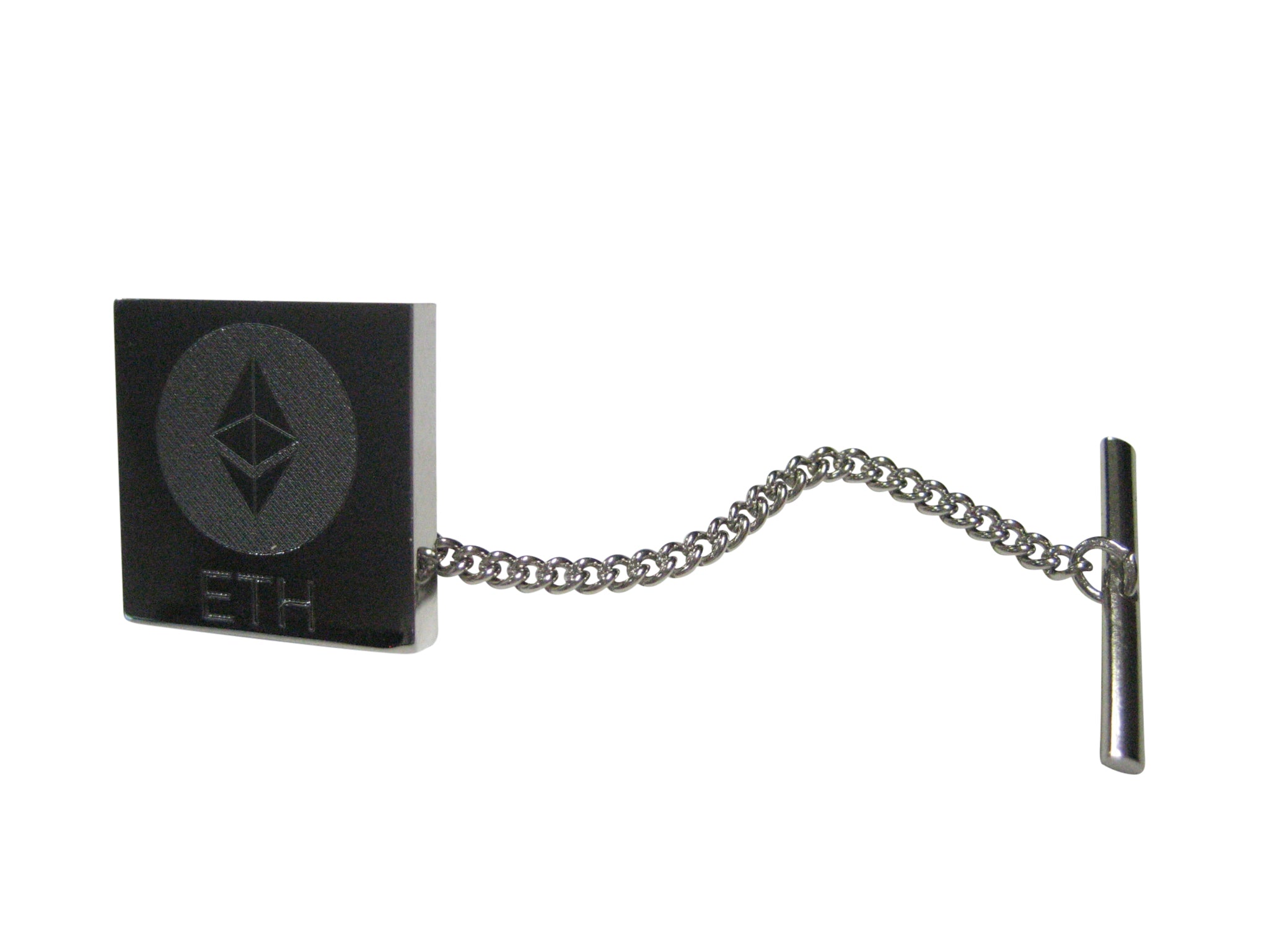 Silver Toned Square Etched Ethereum Coin Cryptocurrency Blockchain Tie Tack