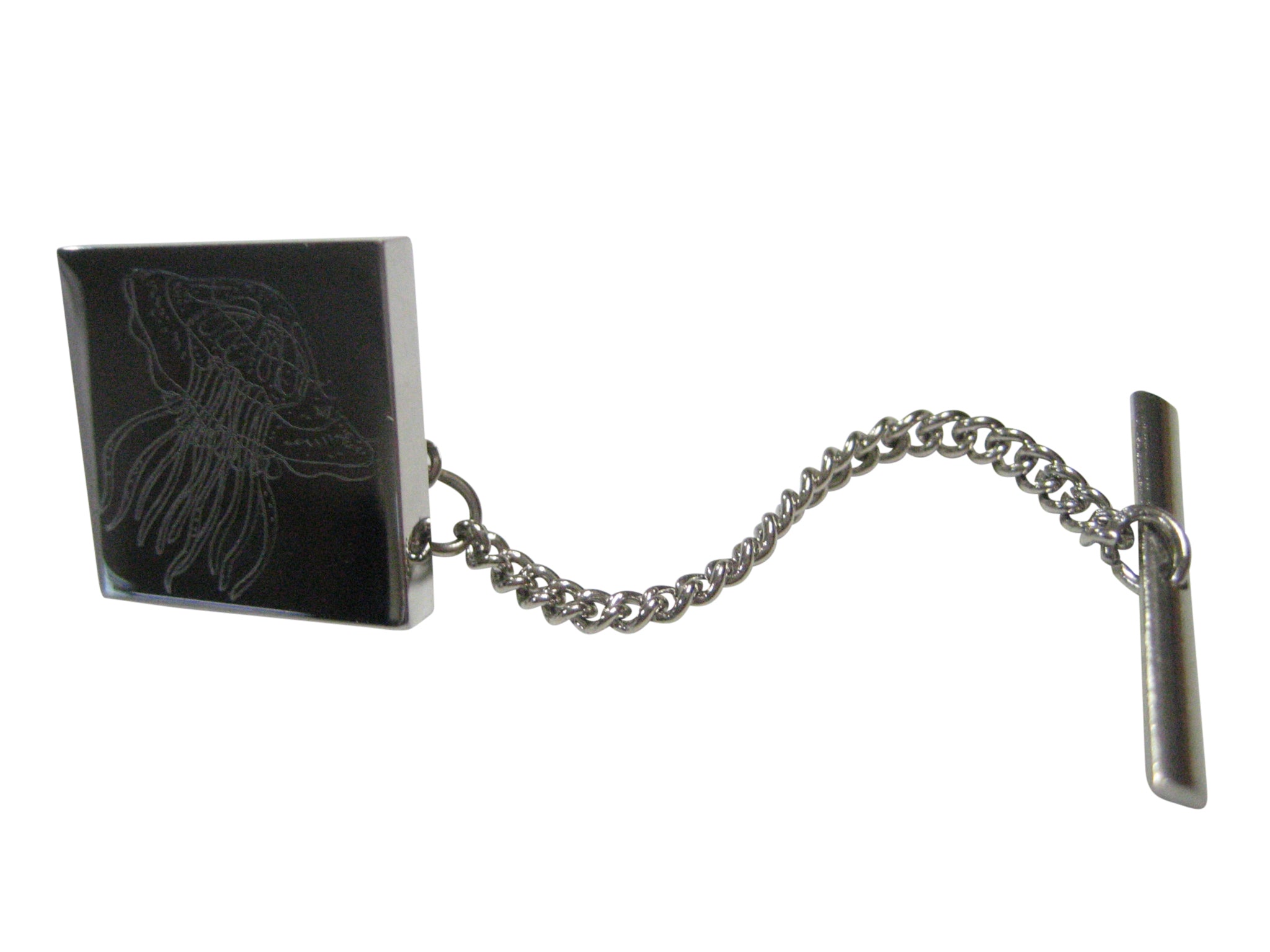 Silver Toned Square Etched Jellyfish Tie Tack