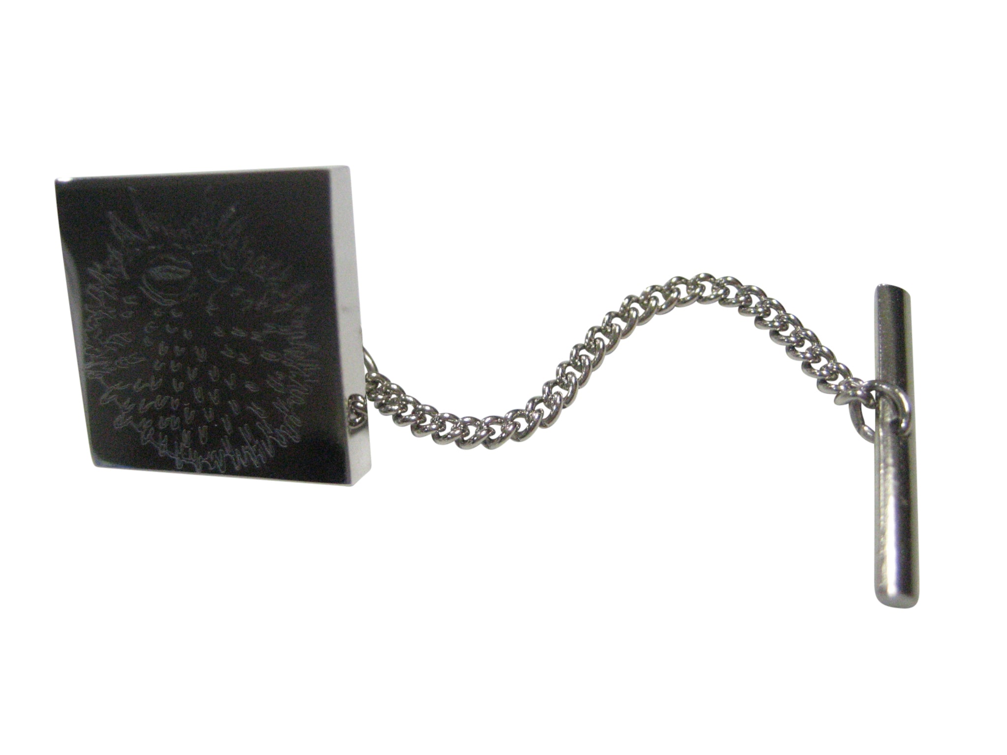 Silver Toned Square Etched Spikey Puffer Fish Fugu Blowfish Tie Tack