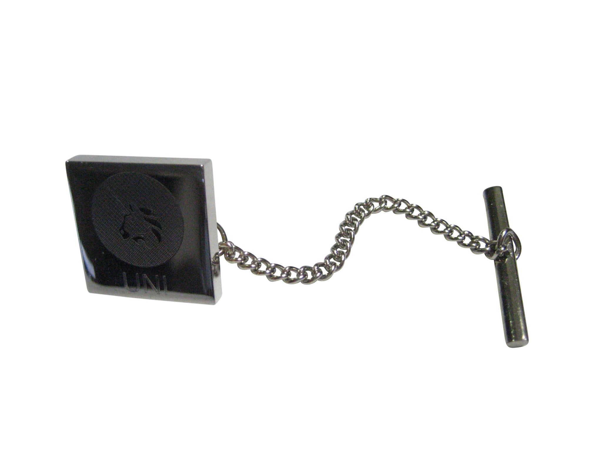 Silver Toned Square Etched Uniswap Coin Cryptocurrency Blockchain Tie Tack
