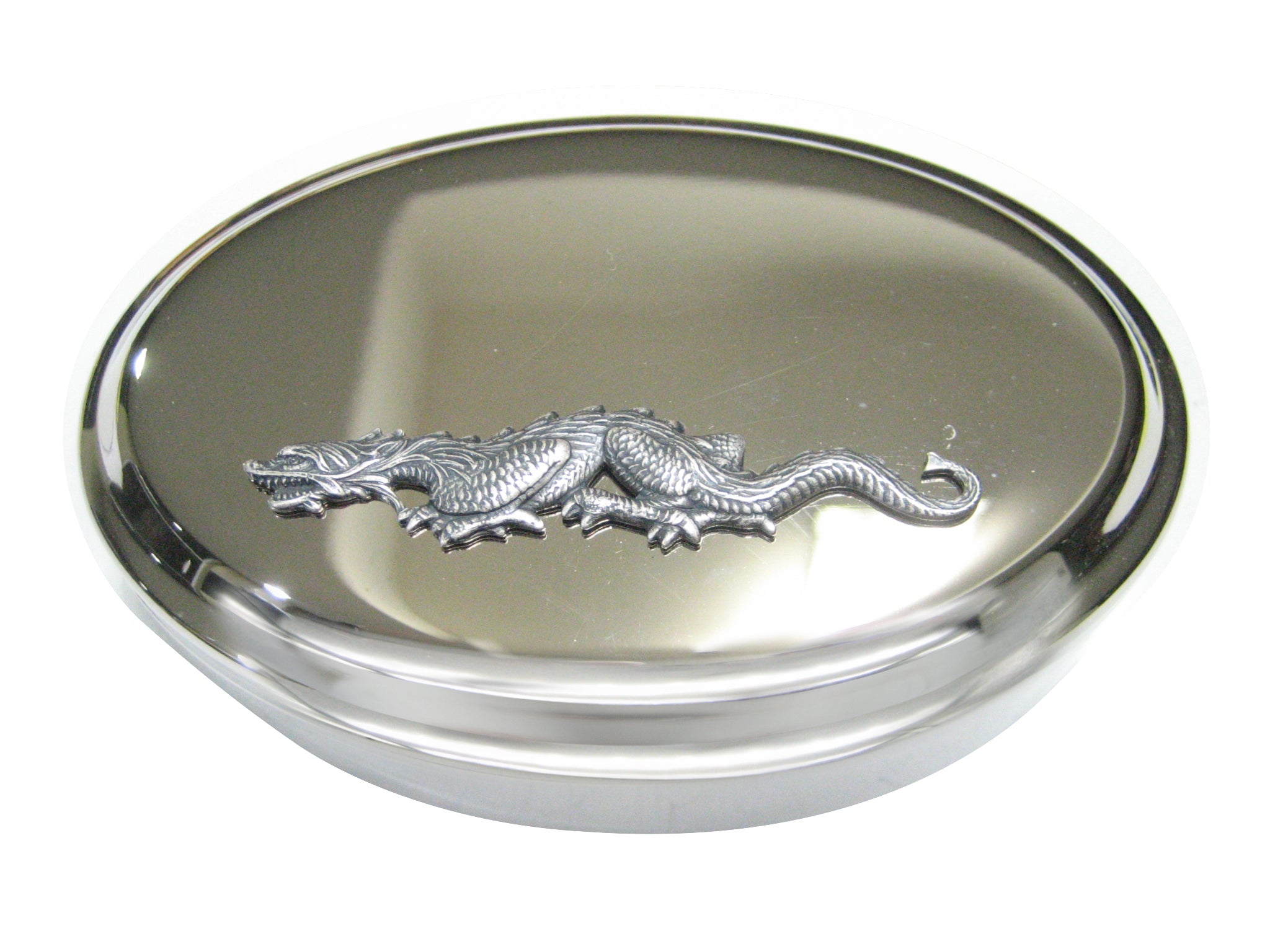 Gunmetal Toned Fierce Dragon Oval Trinket Jewelery Box