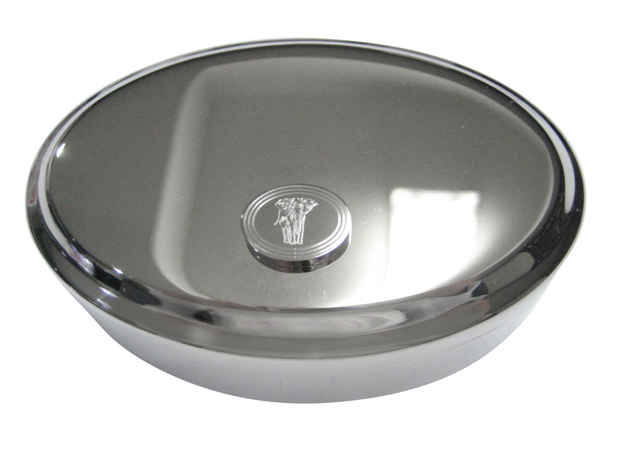 Silver Toned Etched Oval Detailed Elephant Oval Trinket Jewelry Box