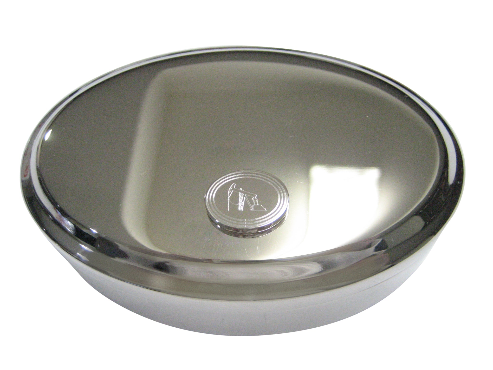 Silver Toned Etched Oval Oil Drill Oval Trinket Jewelry Box