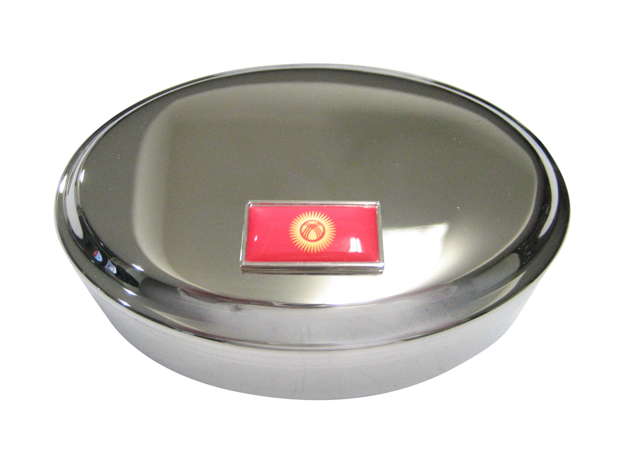 Thin Bordered Kyrgyzstan Kyrgyz Republic Kirghizia Flag Oval Trinket Jewelry Box