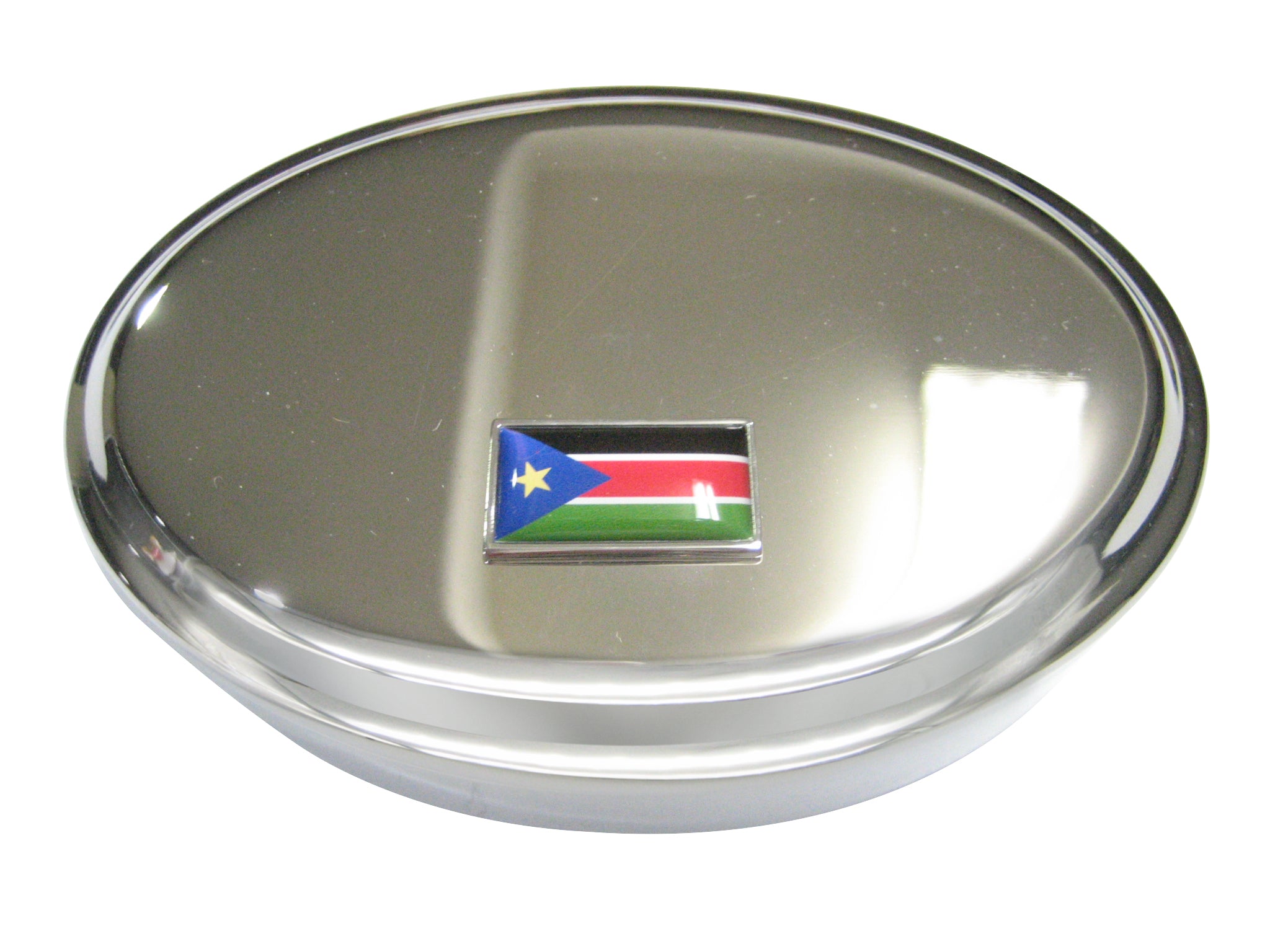 Thin Bordered Republic of South Sudan Flag Oval Trinket Jewlery Box