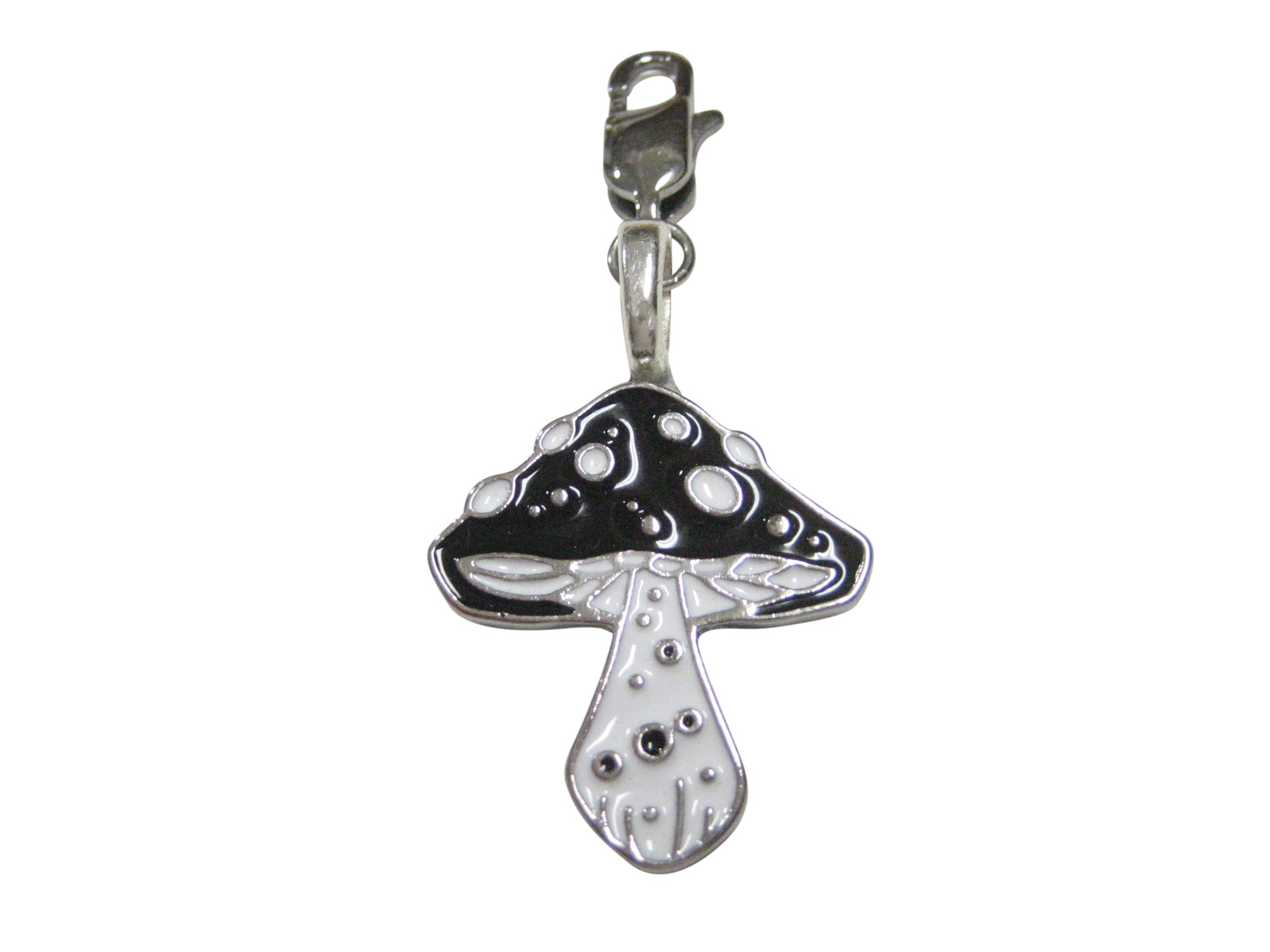 Black and White Toned Mushroom Fungus Pendant Zipper Pull Charm