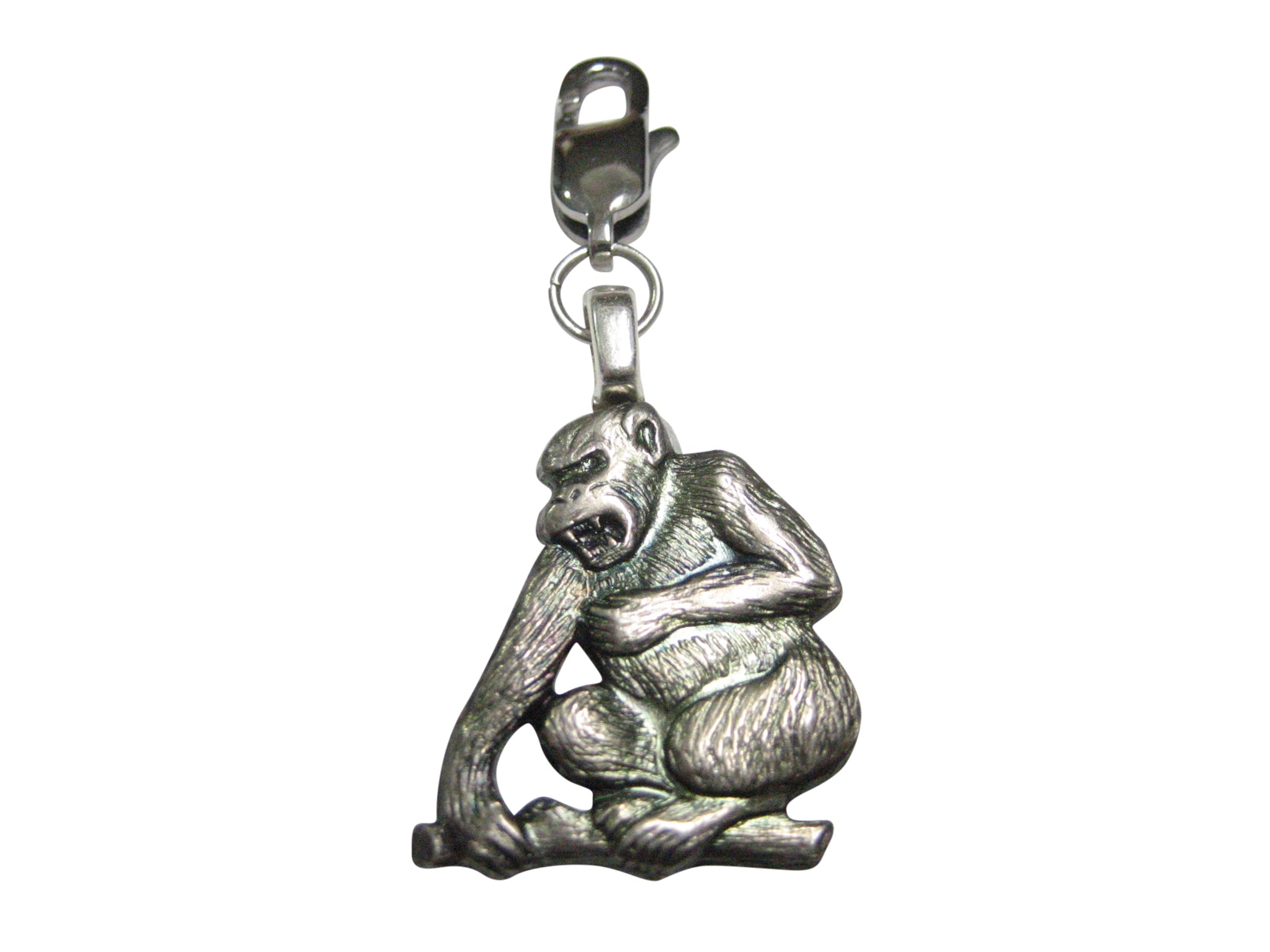 Silver Toned Angry Monkey Pendant Zipper Pull Charm