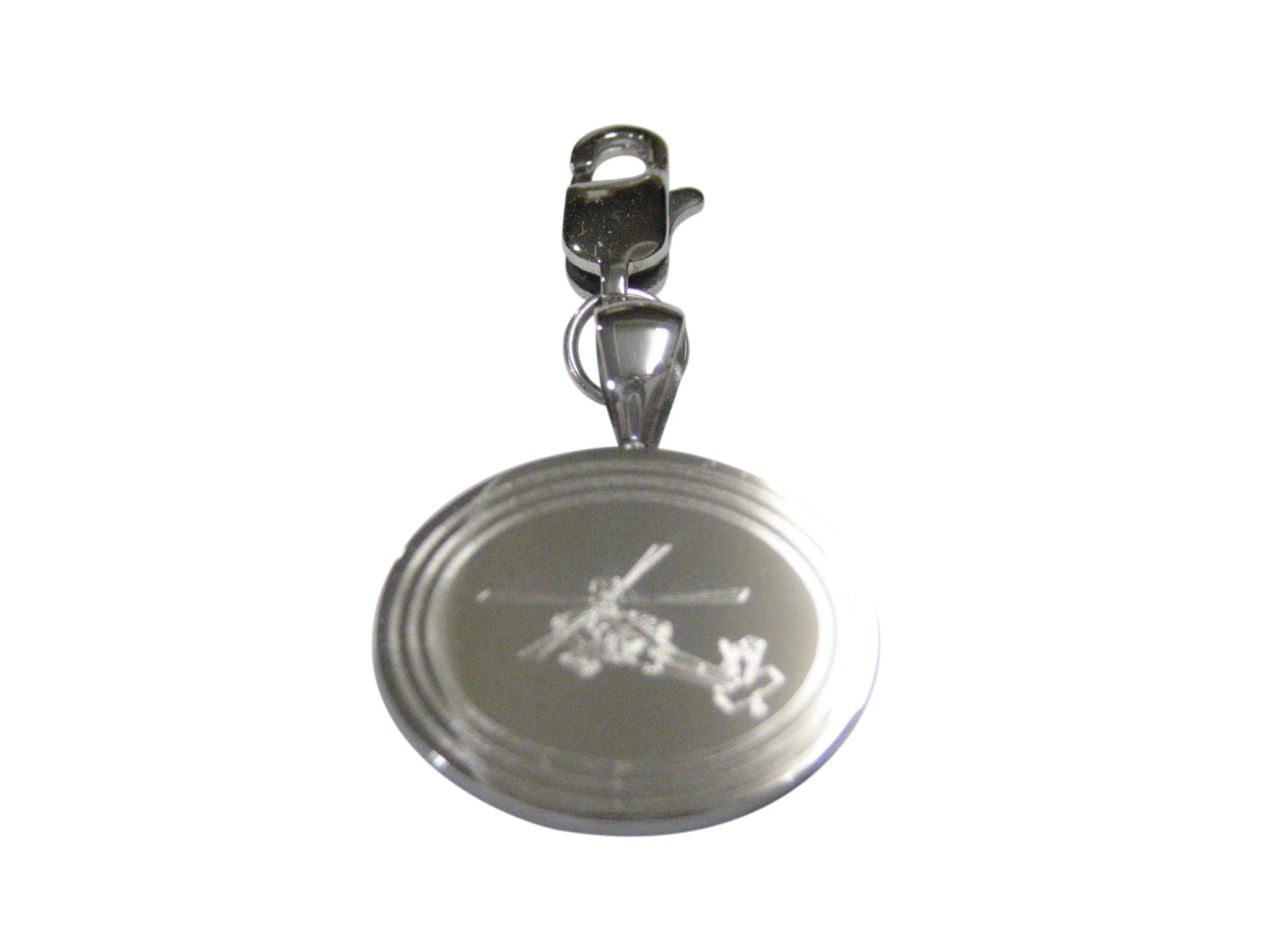 Silver Toned Etched Oval Helicopter Pendant Zipper Pull Charm