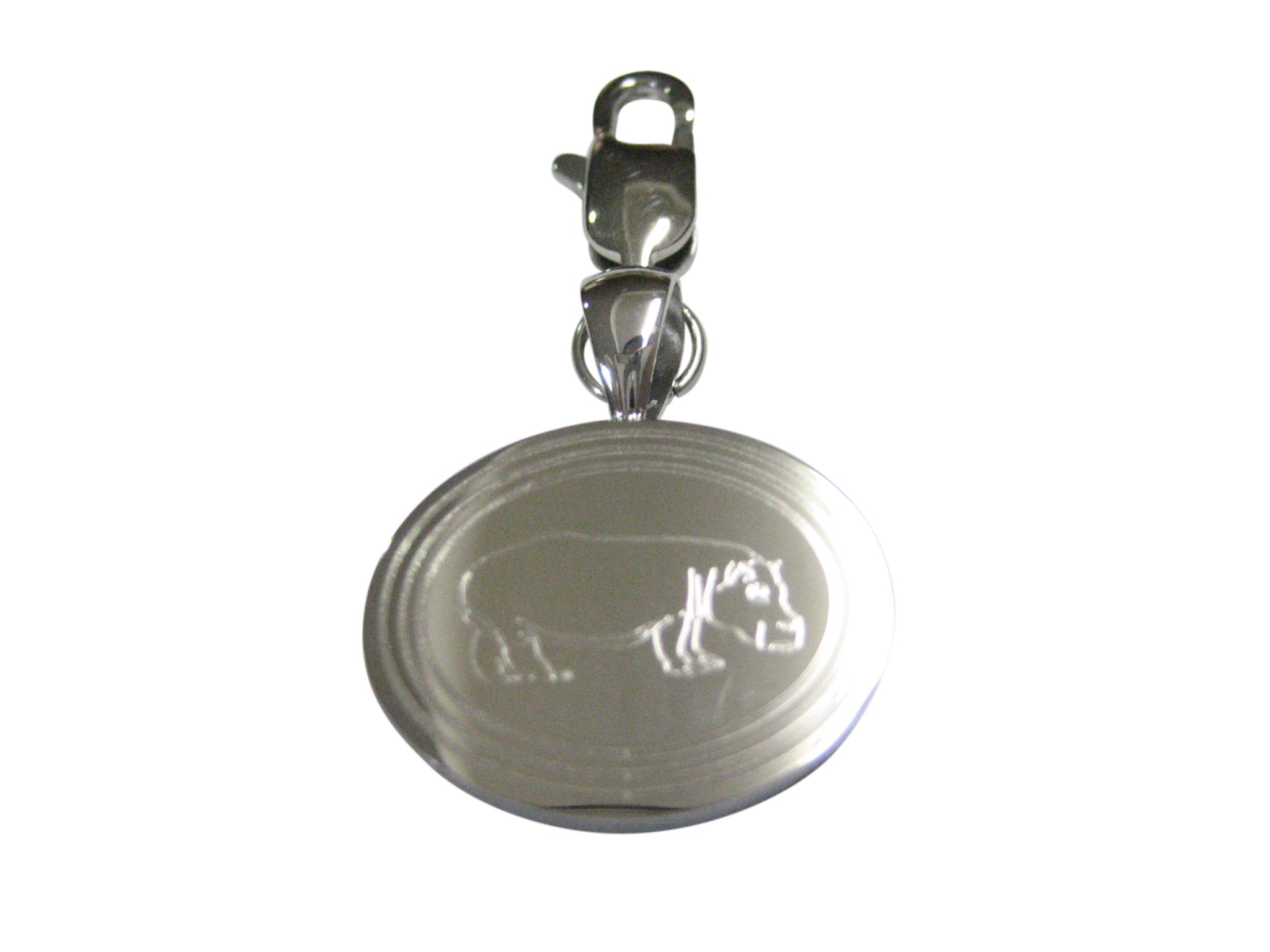 Silver Toned Etched Oval Hippo Pendant Zipper Pull Charm