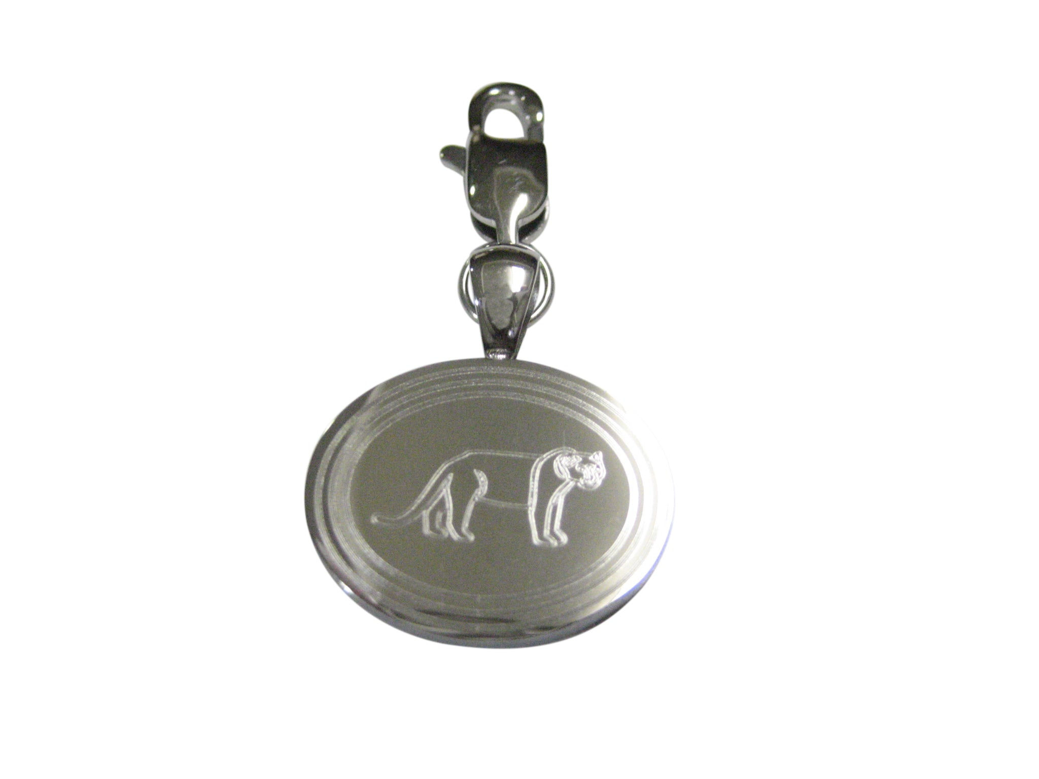 Silver Toned Etched Oval Lioness Pendant Zipper Pull Charm