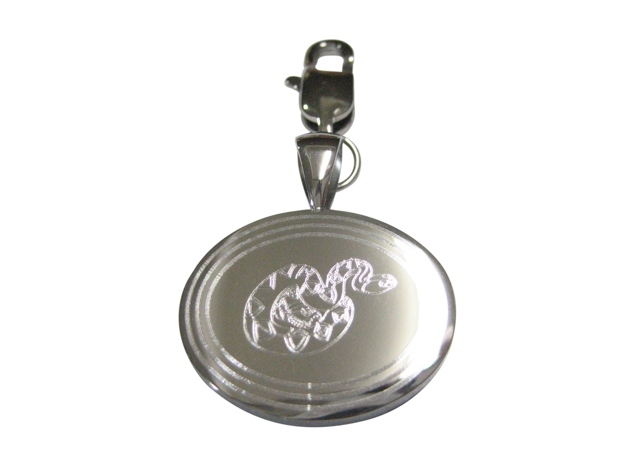 Silver Toned Etched Oval Snake Pendant Zipper Pull Charm