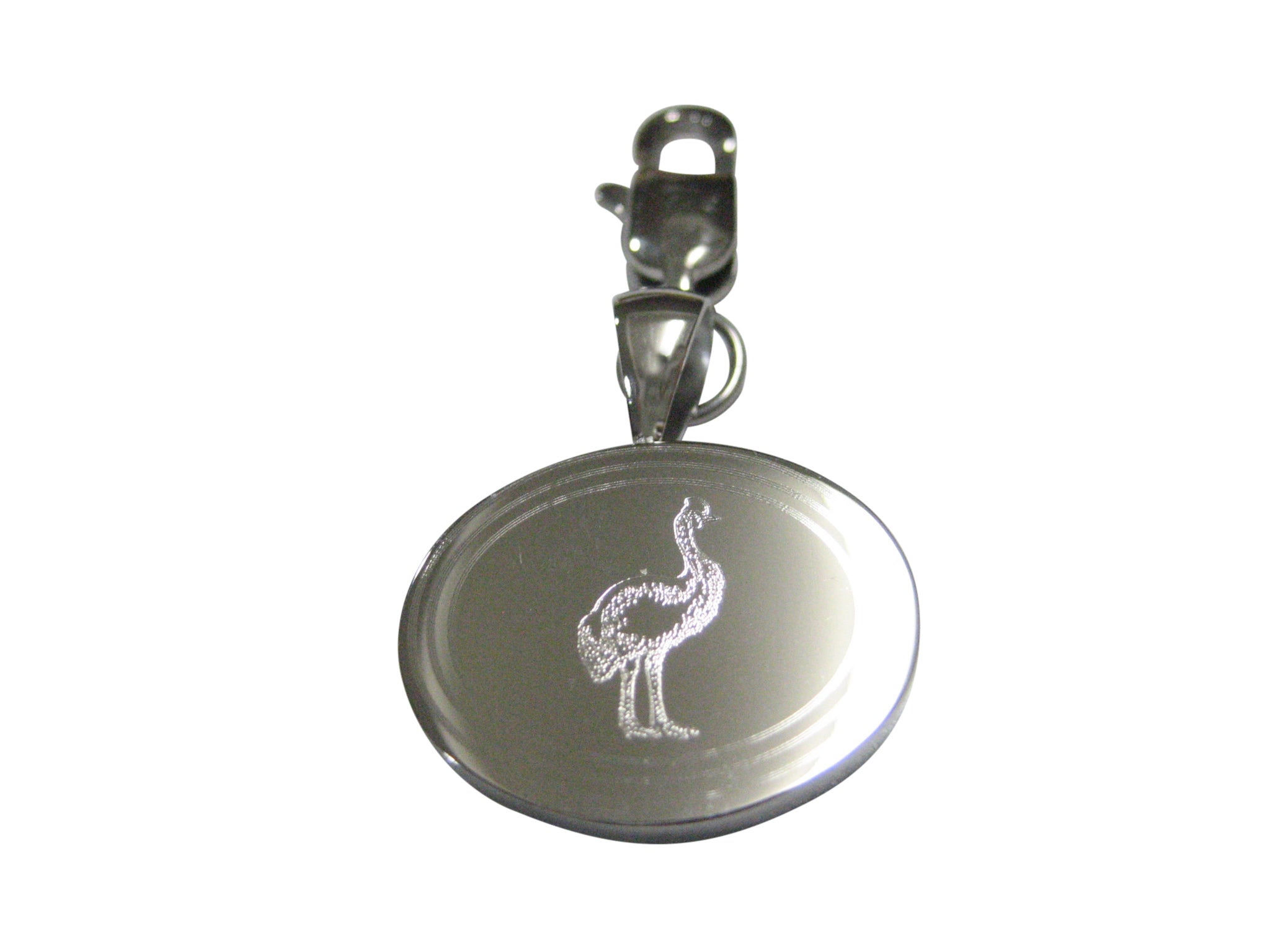 Silver Toned Oval Etched Cassowary Bird Pendant Zipper Pull Charm