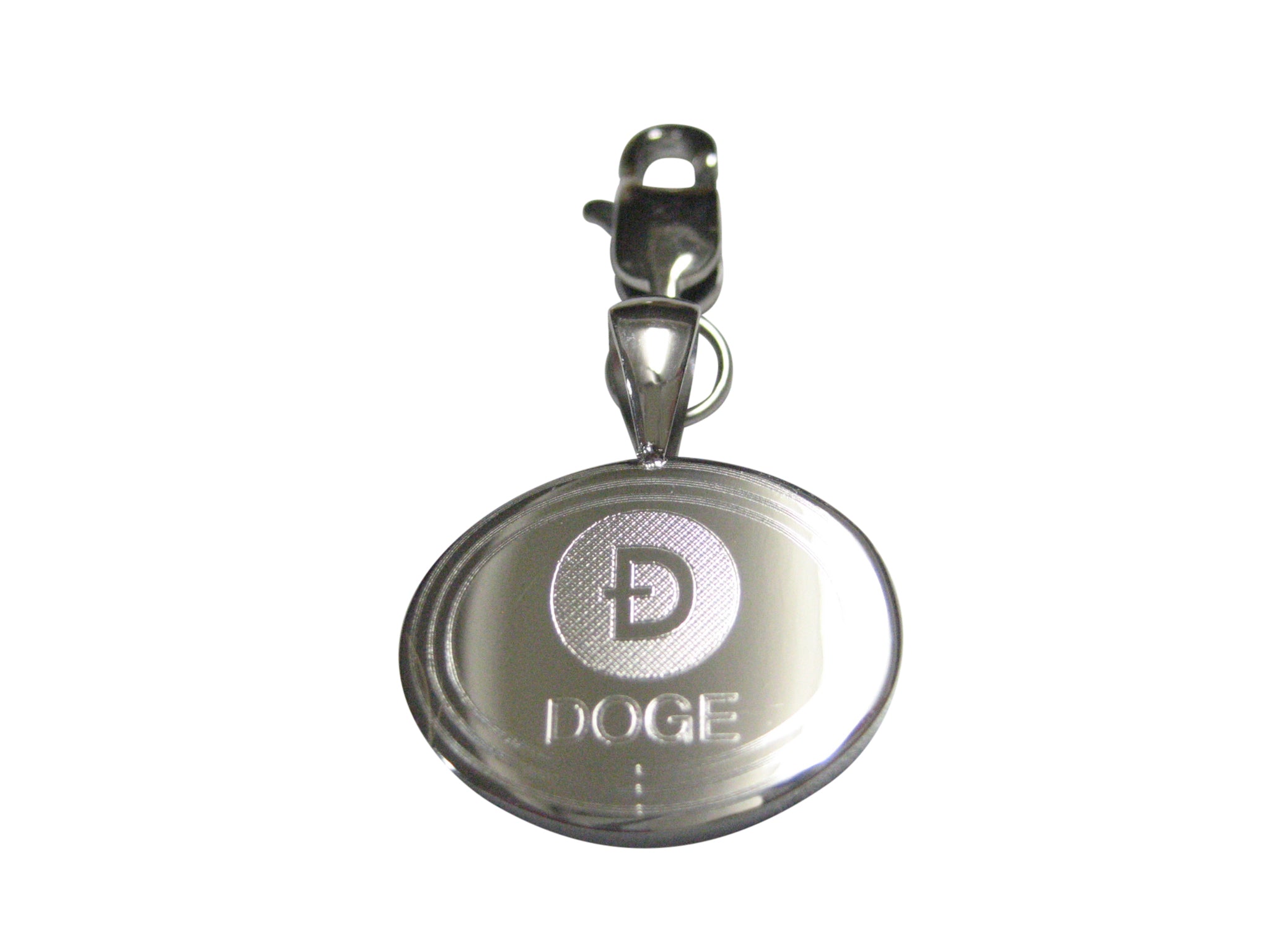 Silver Toned Oval Etched Doge Coin Cryptocurrency Blockchain Pendant Zipper Pull Charm