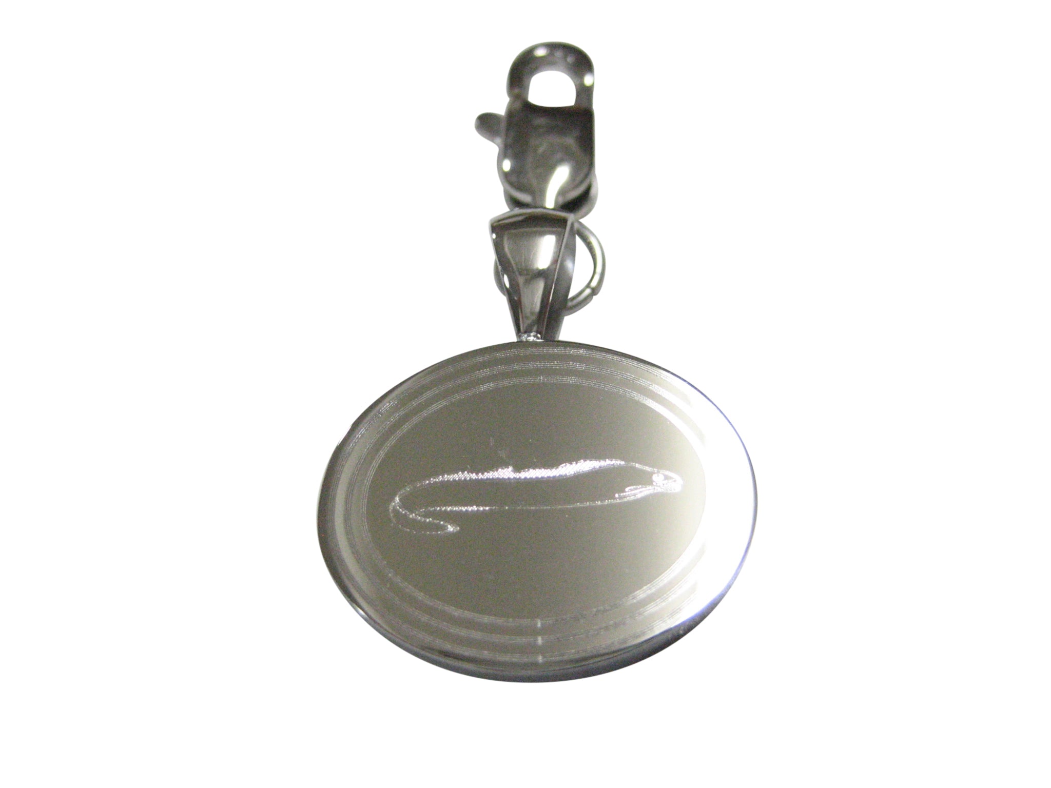 Silver Toned Oval Etched Moray Eel Fish Pendant Zipper Pull Charm