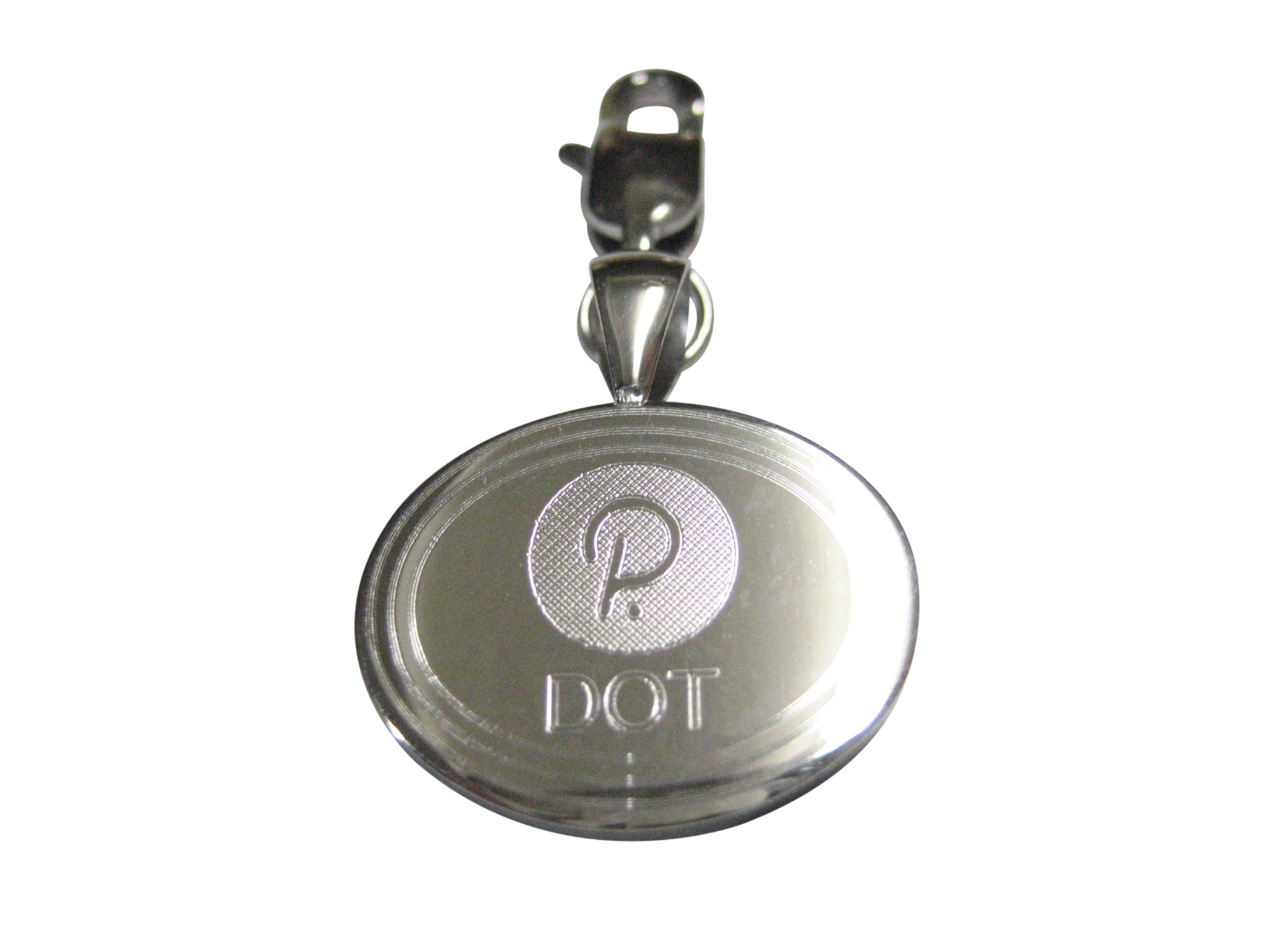 Silver Toned Oval Etched Polkadot Coin Cryptocurrency Blockchain Pendant Zipper Pull Charm