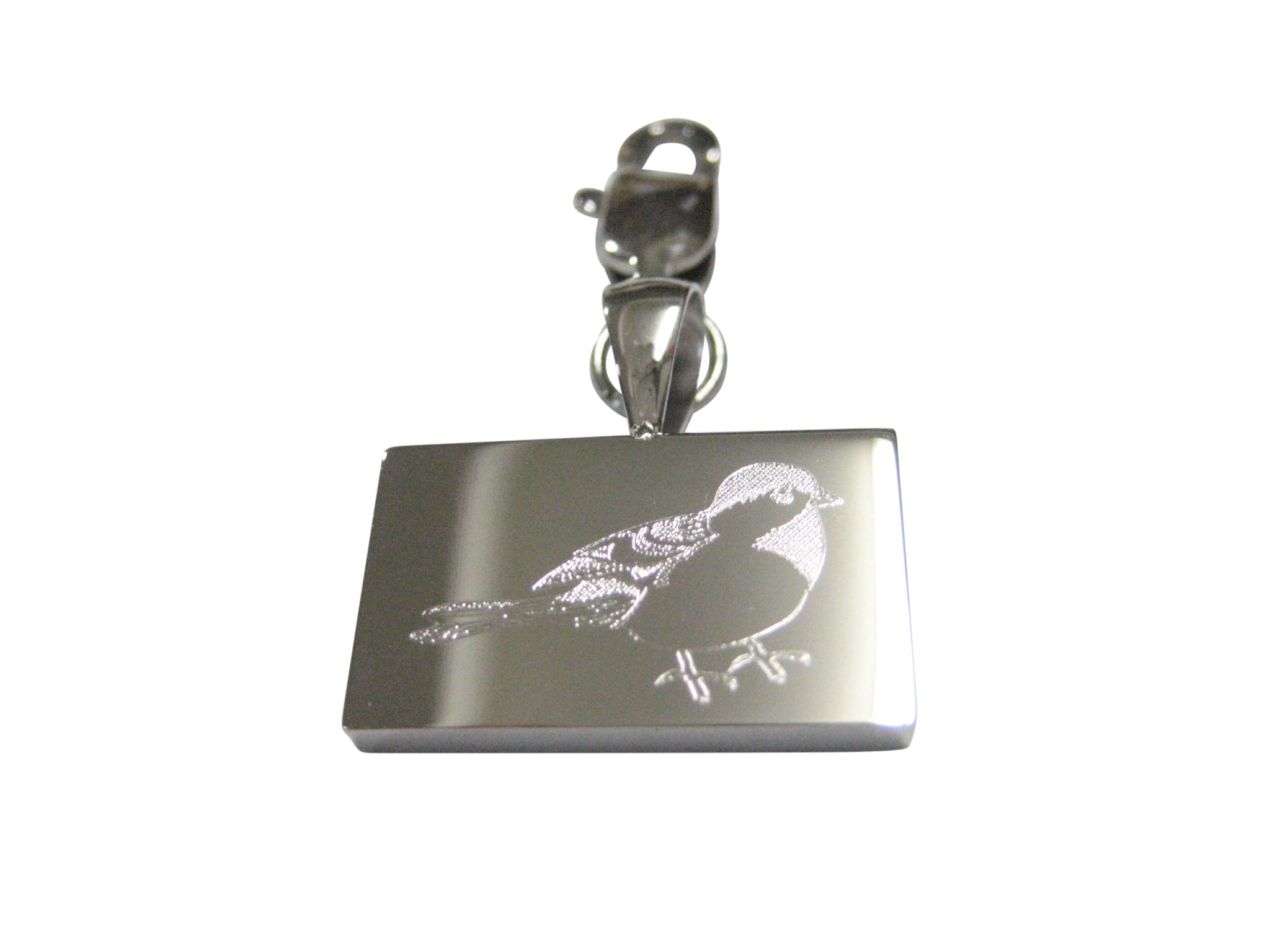 Silver Toned Rectangular Etched Chickadee Bird Pendant Zipper Pull Charm
