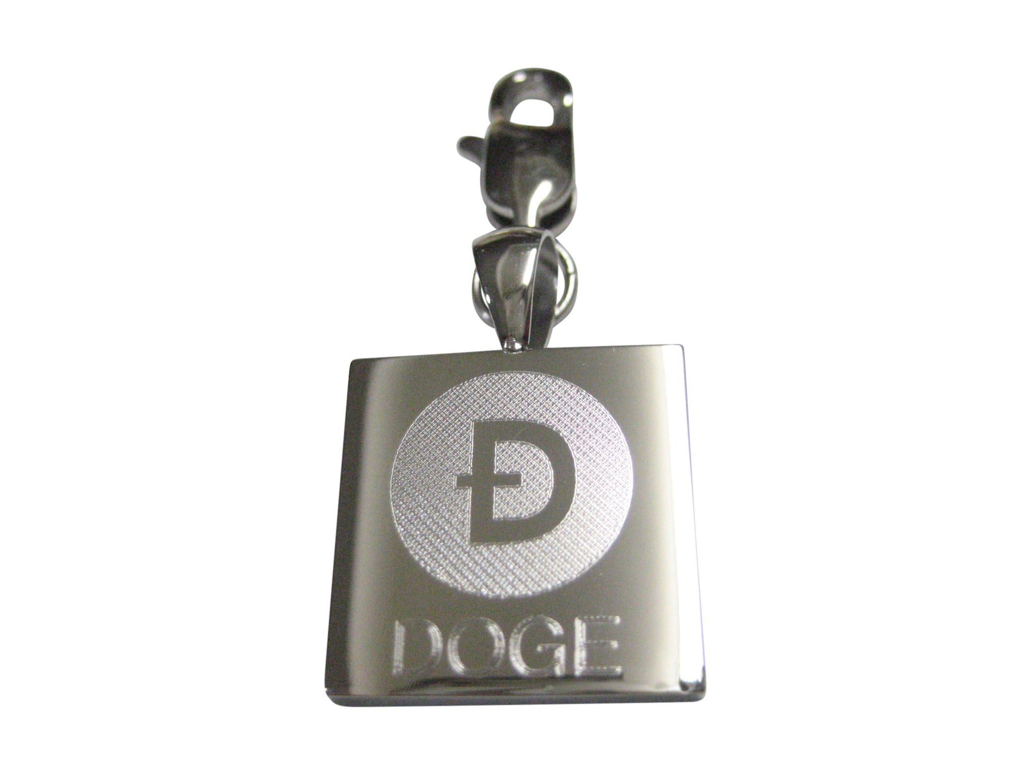 Silver Toned Square Etched Doge Coin Cryptocurrency Blockchain Pendant Zipper Pull Charm