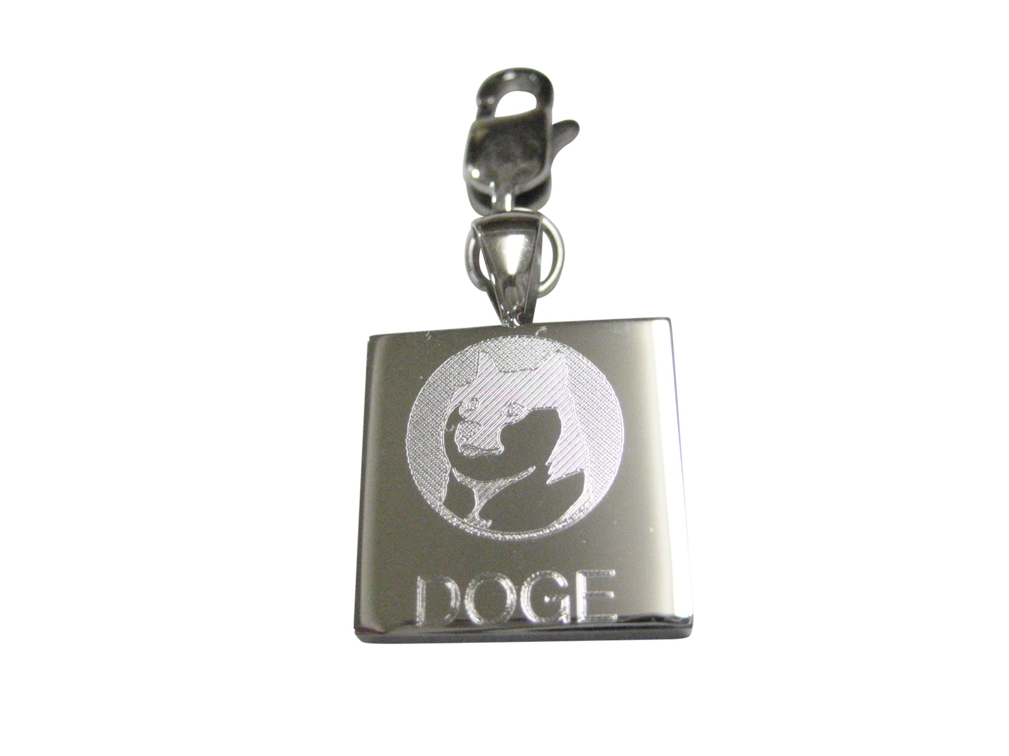 Silver Toned Square Etched Doge Coin Cryptocurrency Blockchain With Shiba Dog Pendant Zipper Pull Charm