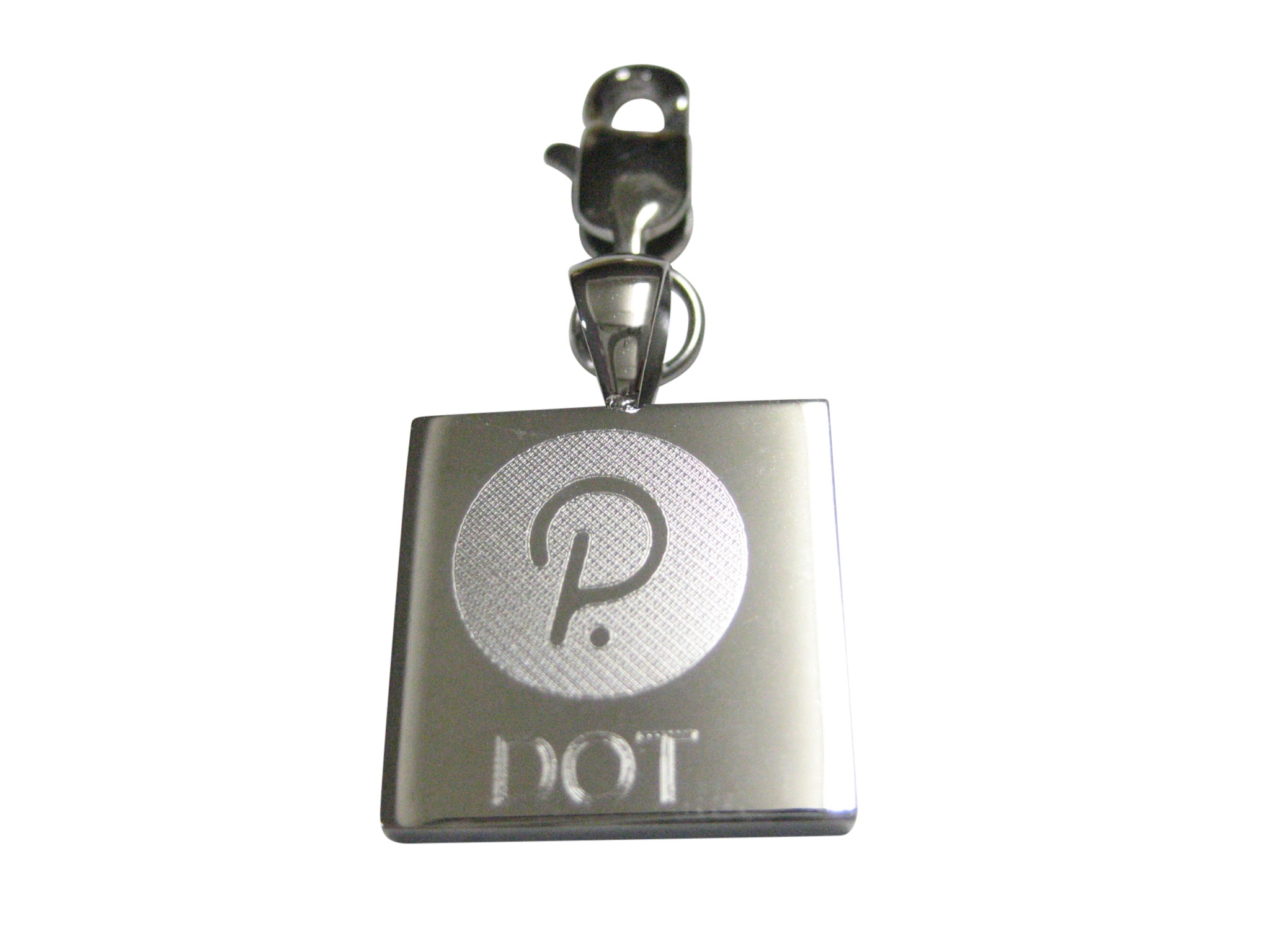 Silver Toned Square Etched Polkadot Coin Cryptocurrency Blockchain Pendant Zipper Pull Charm