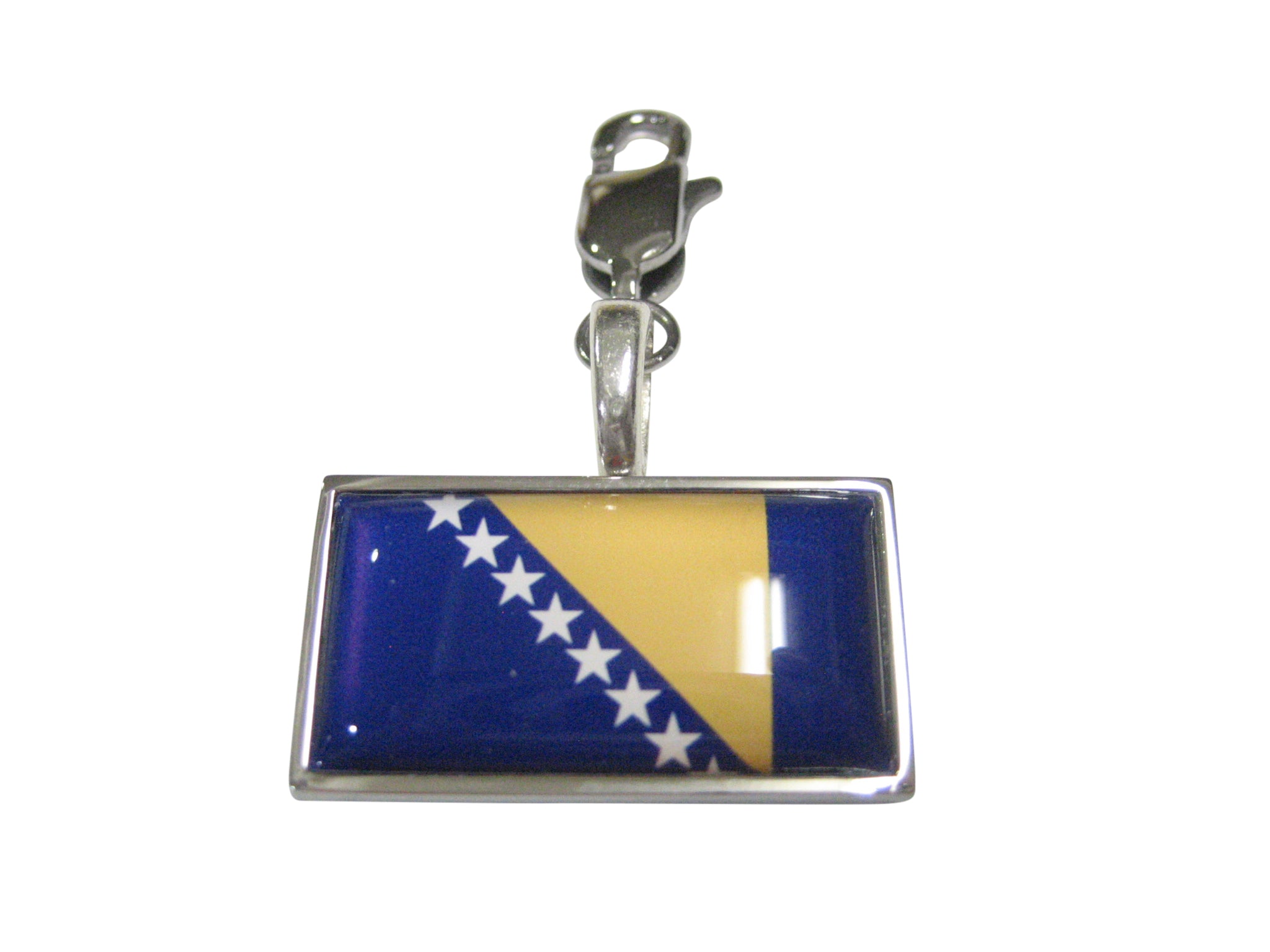 Thin Bordered Bosnia and Herzegovina Flag Pendant Zipper Pull Charm