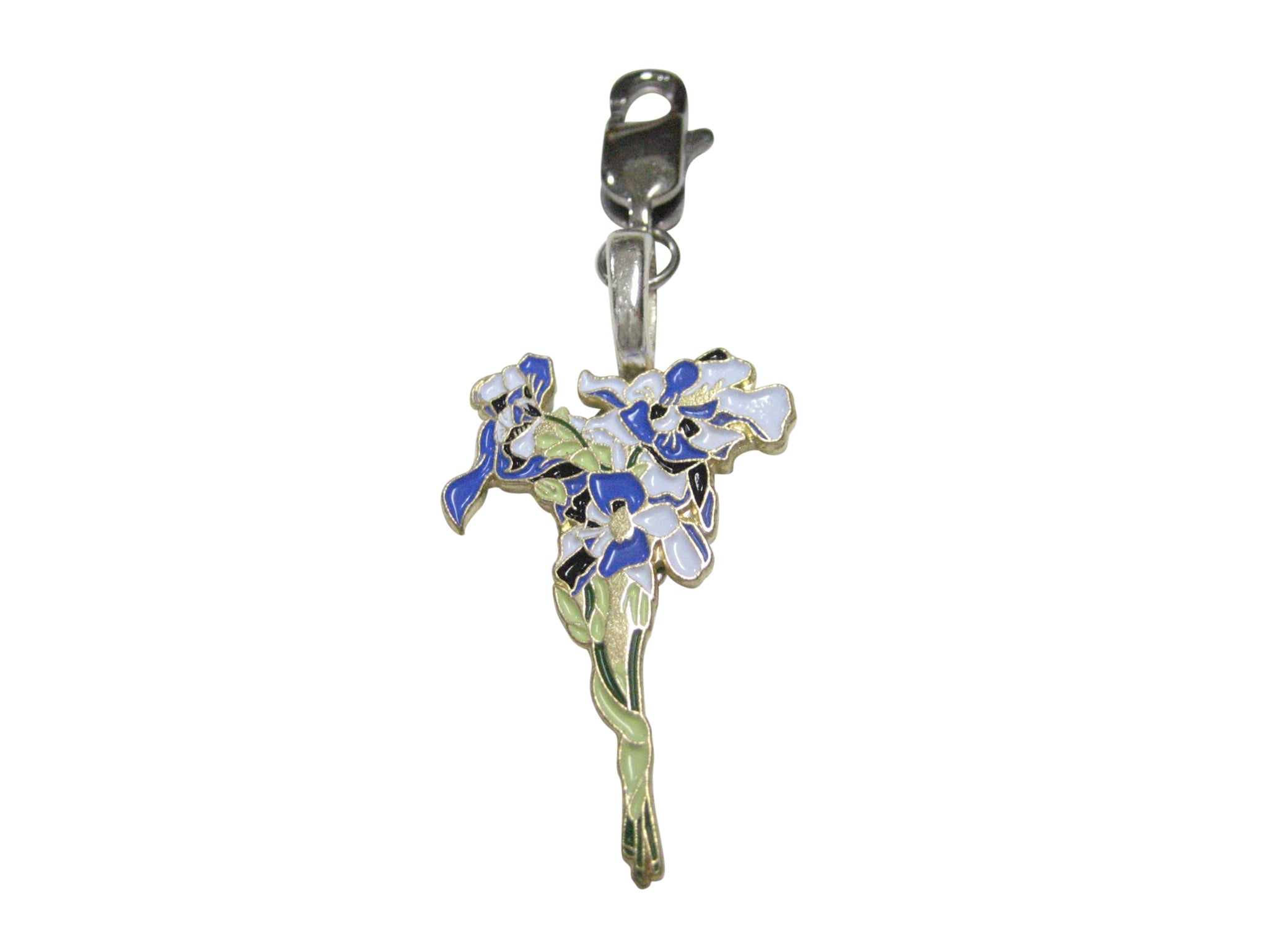 Violet and White Toned Iris Flower Pendant Zipper Pull Charm
