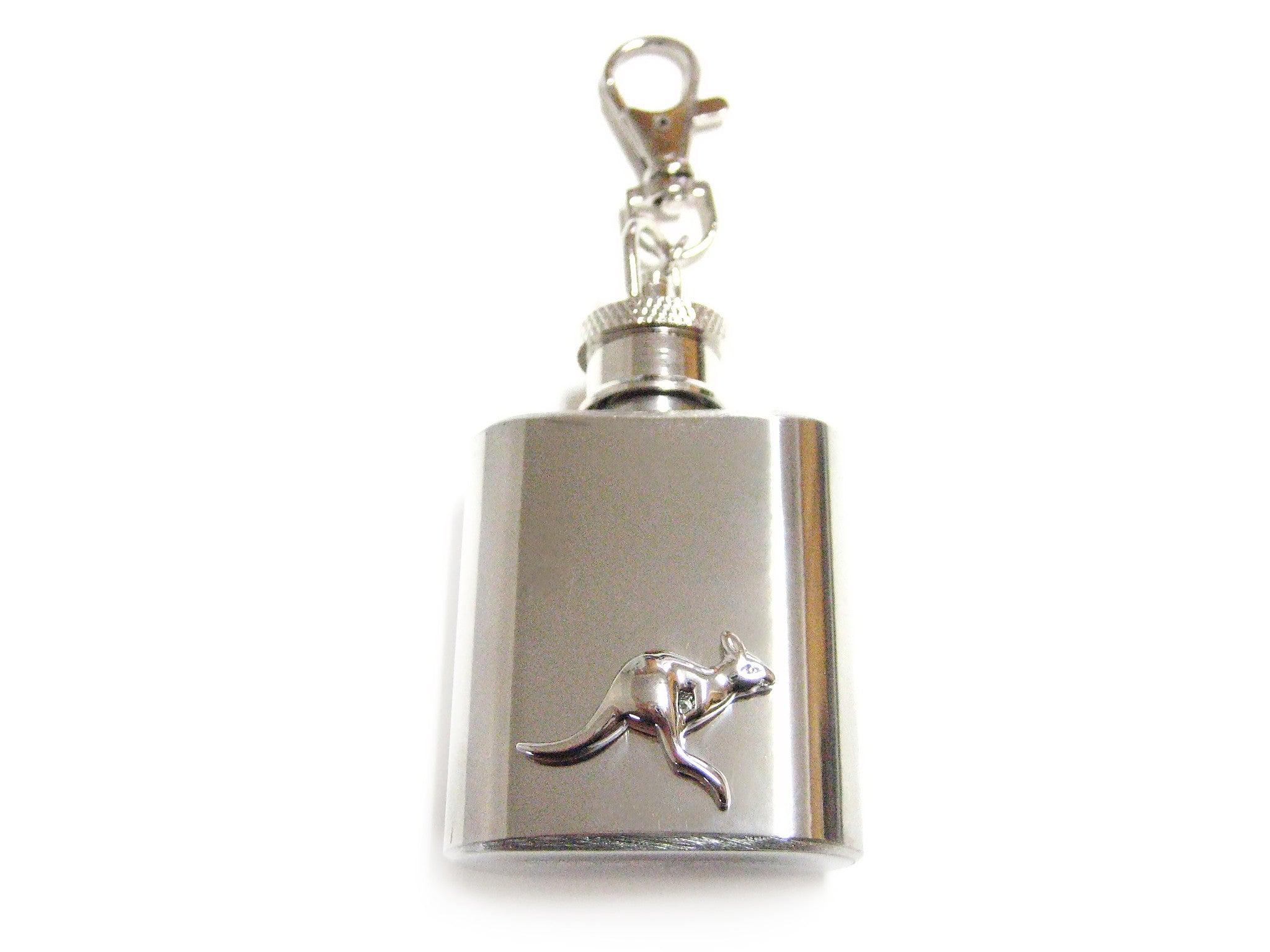 1 oz. Stainless Steel Key Chain Flask with Kangaroo Pendant by Kiola Designs