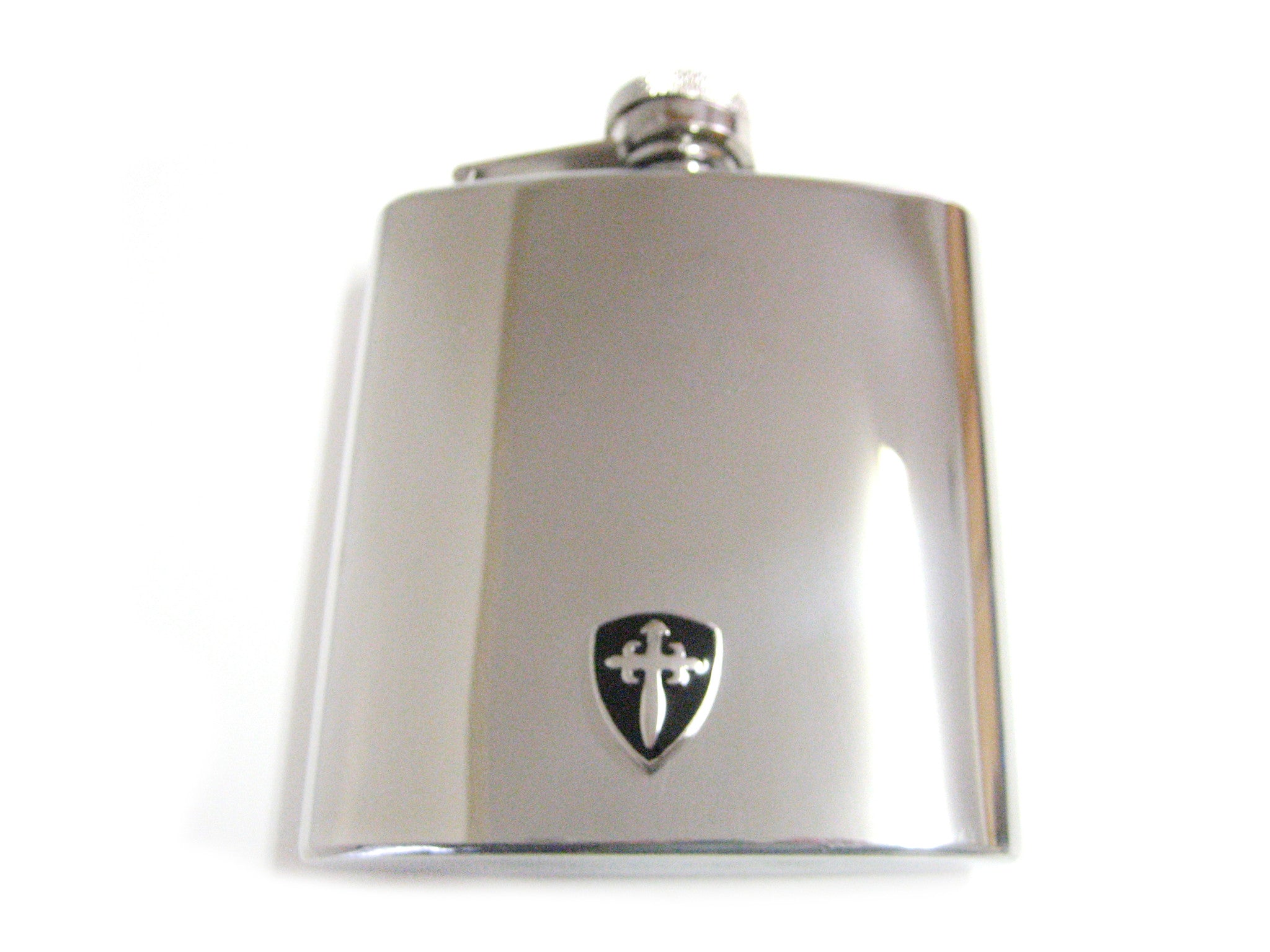 6 Oz. Stainless Steel Flask with Black Medieval Shield Pendant
