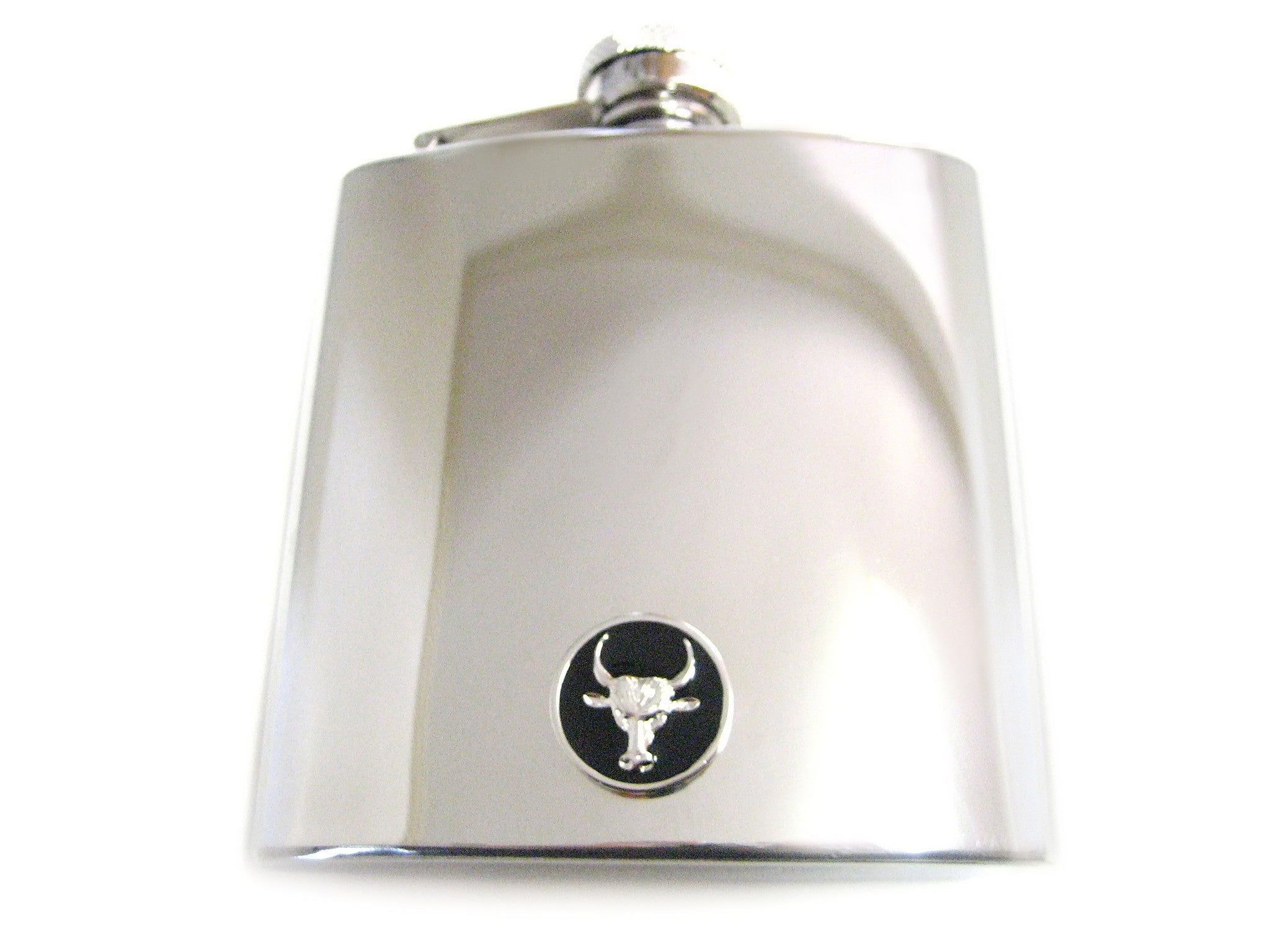6 Oz. Stainless Steel Flask with Bull Pendant
