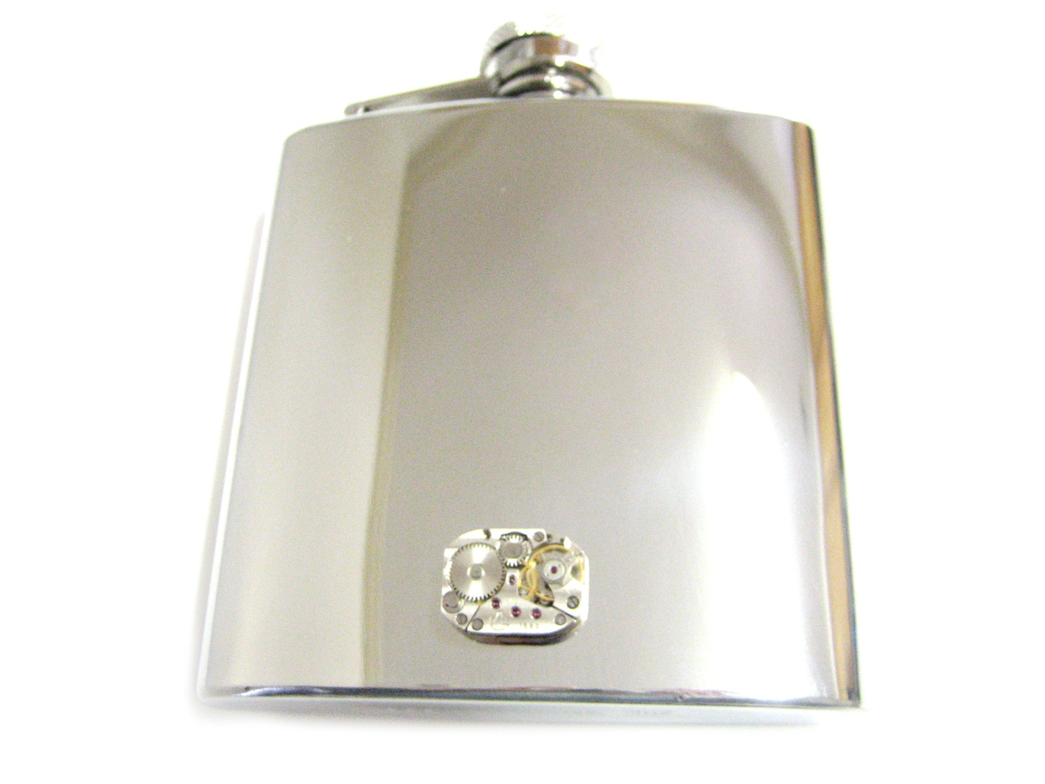 6 Oz. Stainless Steel Flask with Steampunk Rectangular Watch Gear Pendant