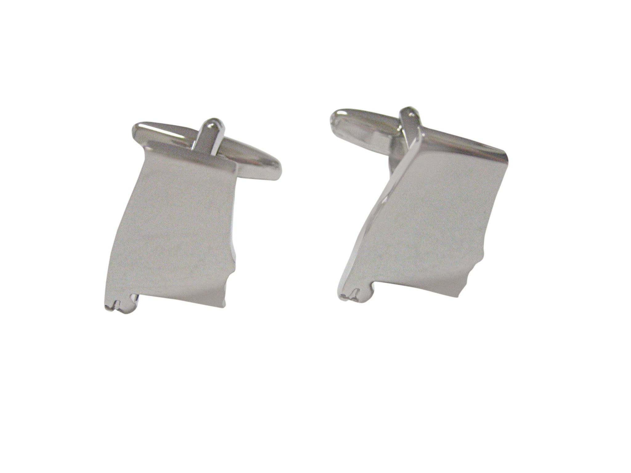 The cufflink is roughly 1/2 inch long by 3/4 inch high