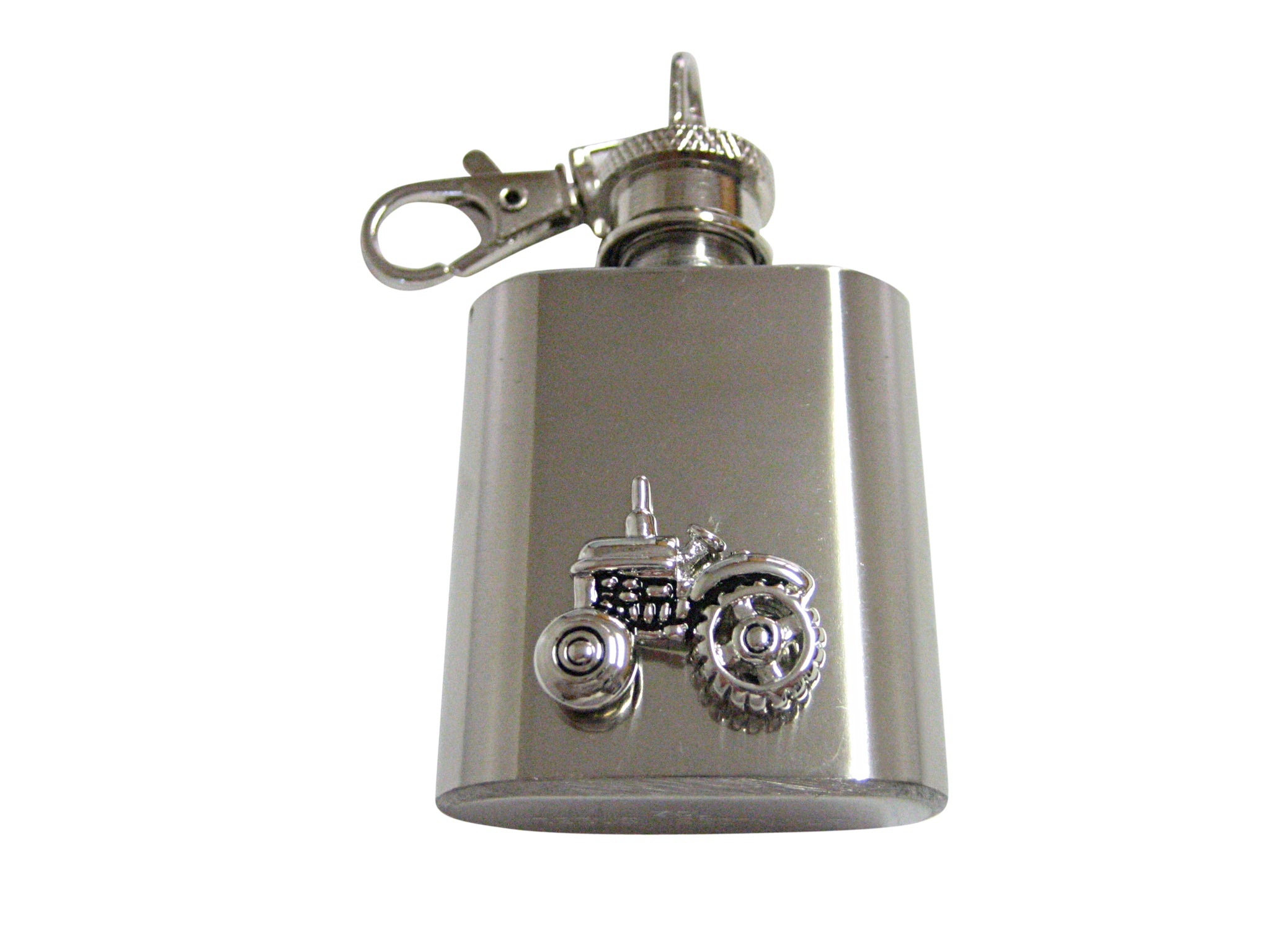 Black and Silver Toned Detailed Farming Tractor 1oz. Keychain Flask