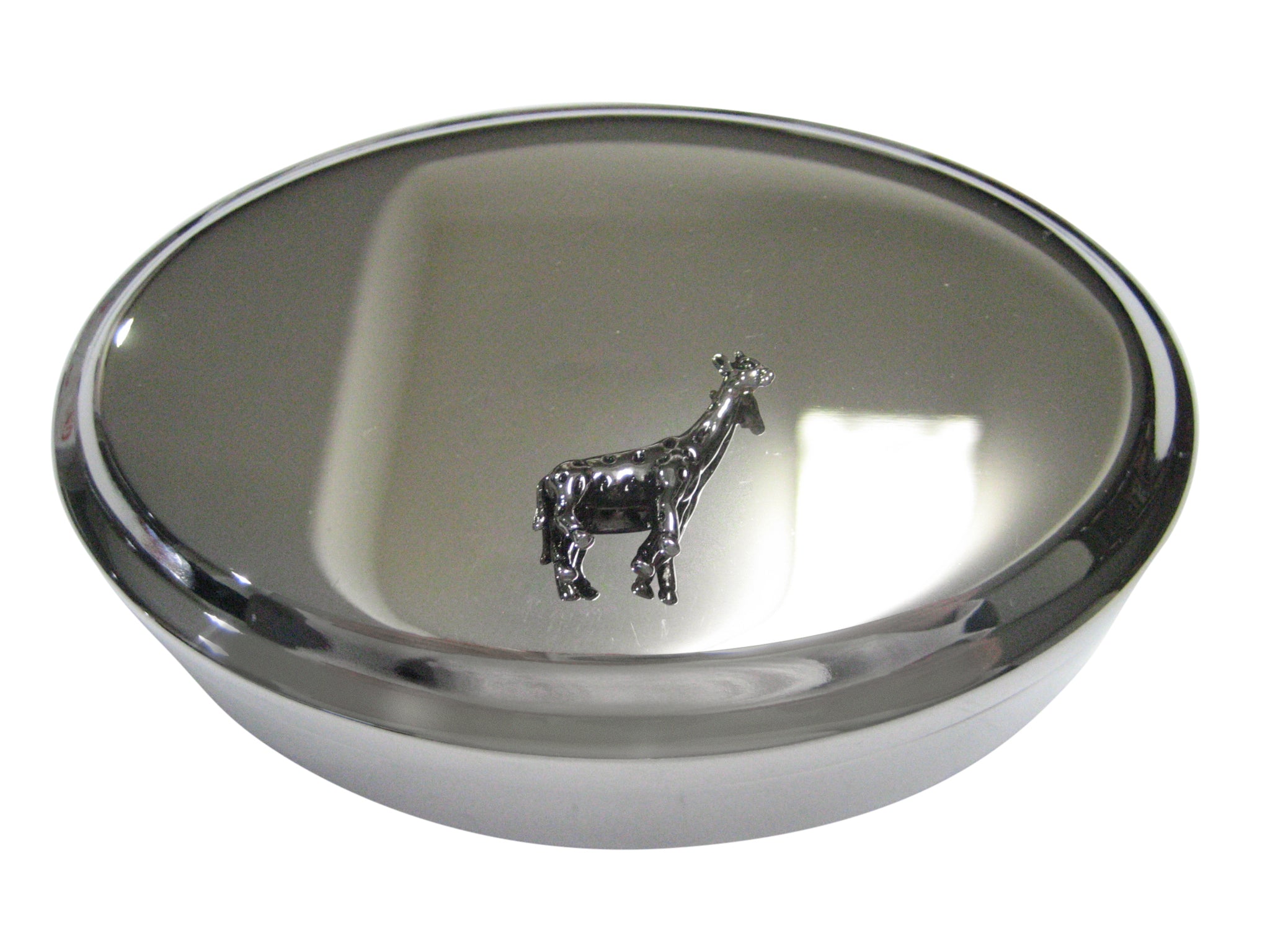 Black and Silver Toned Giraffe Oval Trinket Jewelry Box