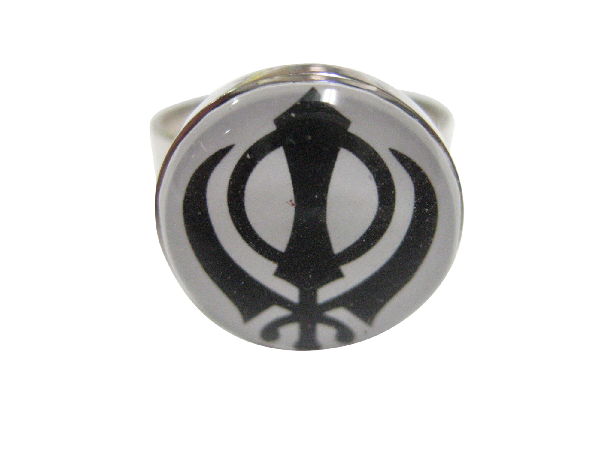 Black and White Toned Khanda Sikh Adjustable Size Fashion Ring