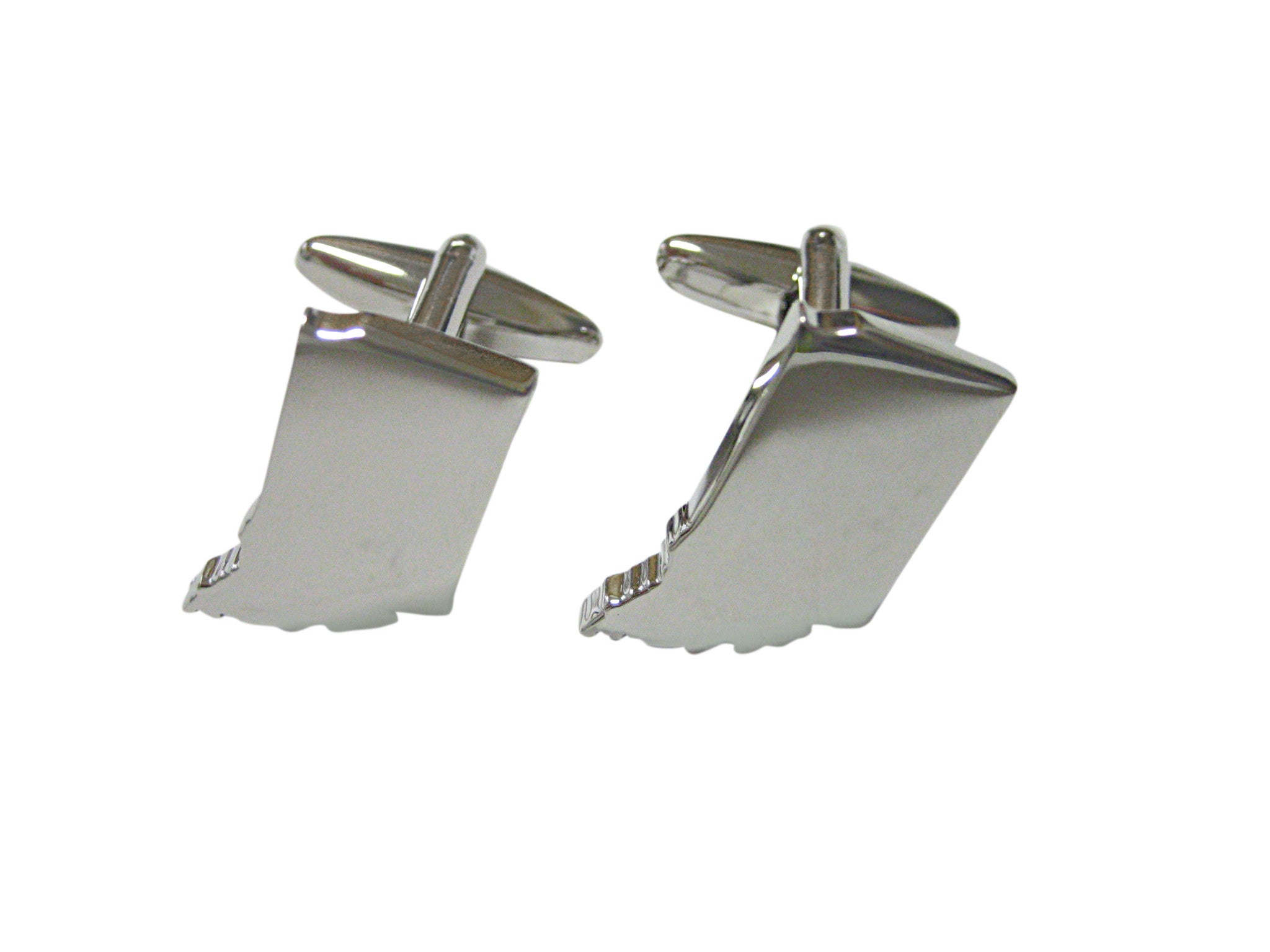 The cufflink is roughly 1/2 inch long by 7/8 inch high