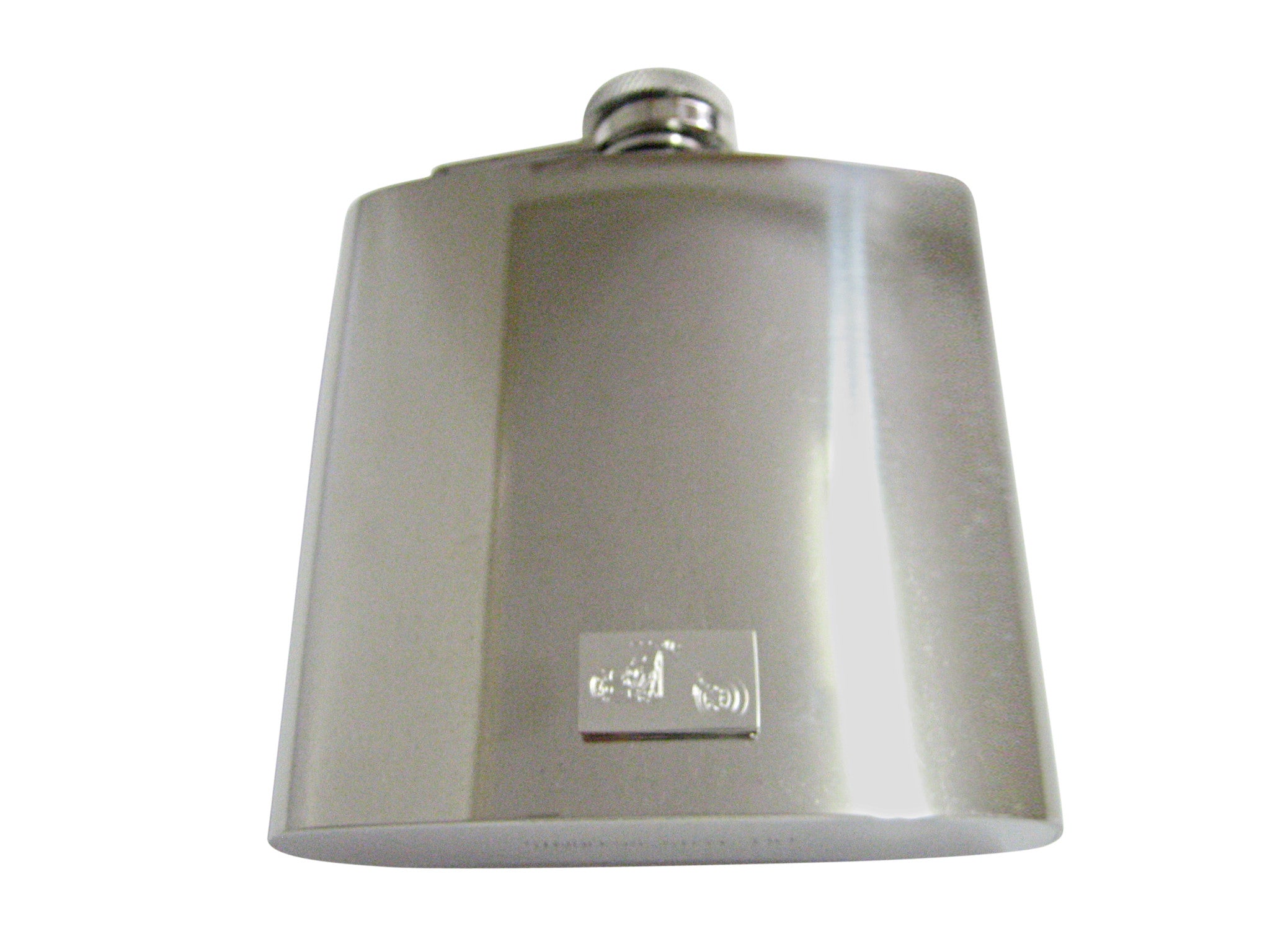 Silver Toned Etched Chopper Motorcycle 6 Oz. Stainless Steel Flask