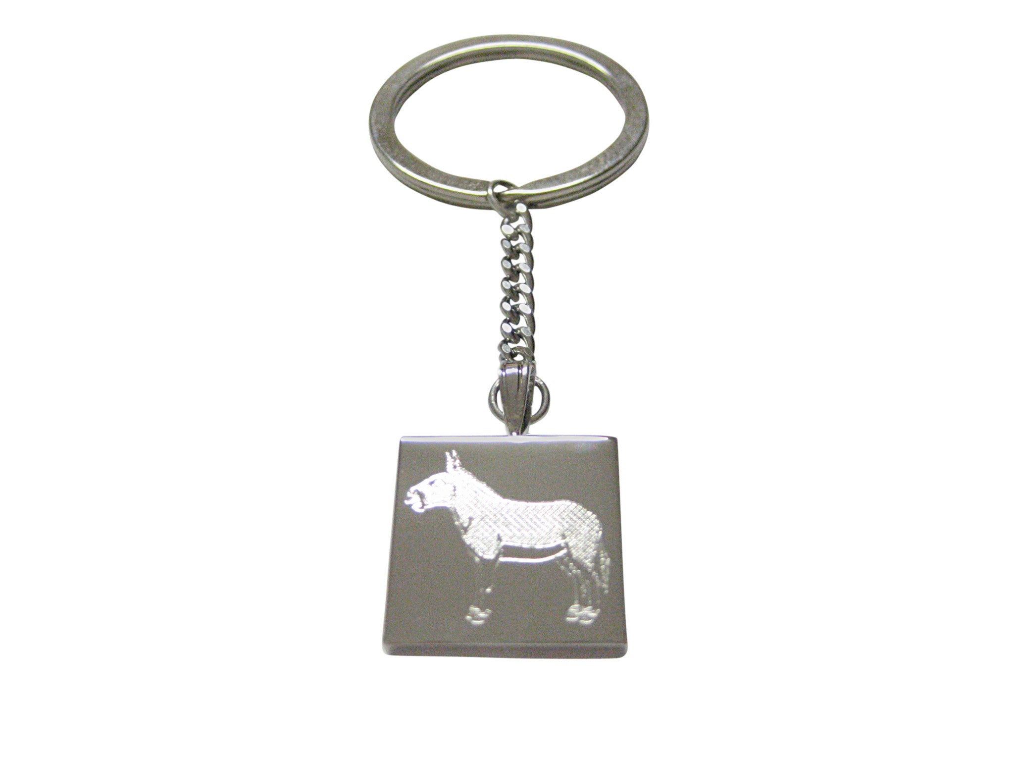 Silver Toned Etched Donkey Keychain