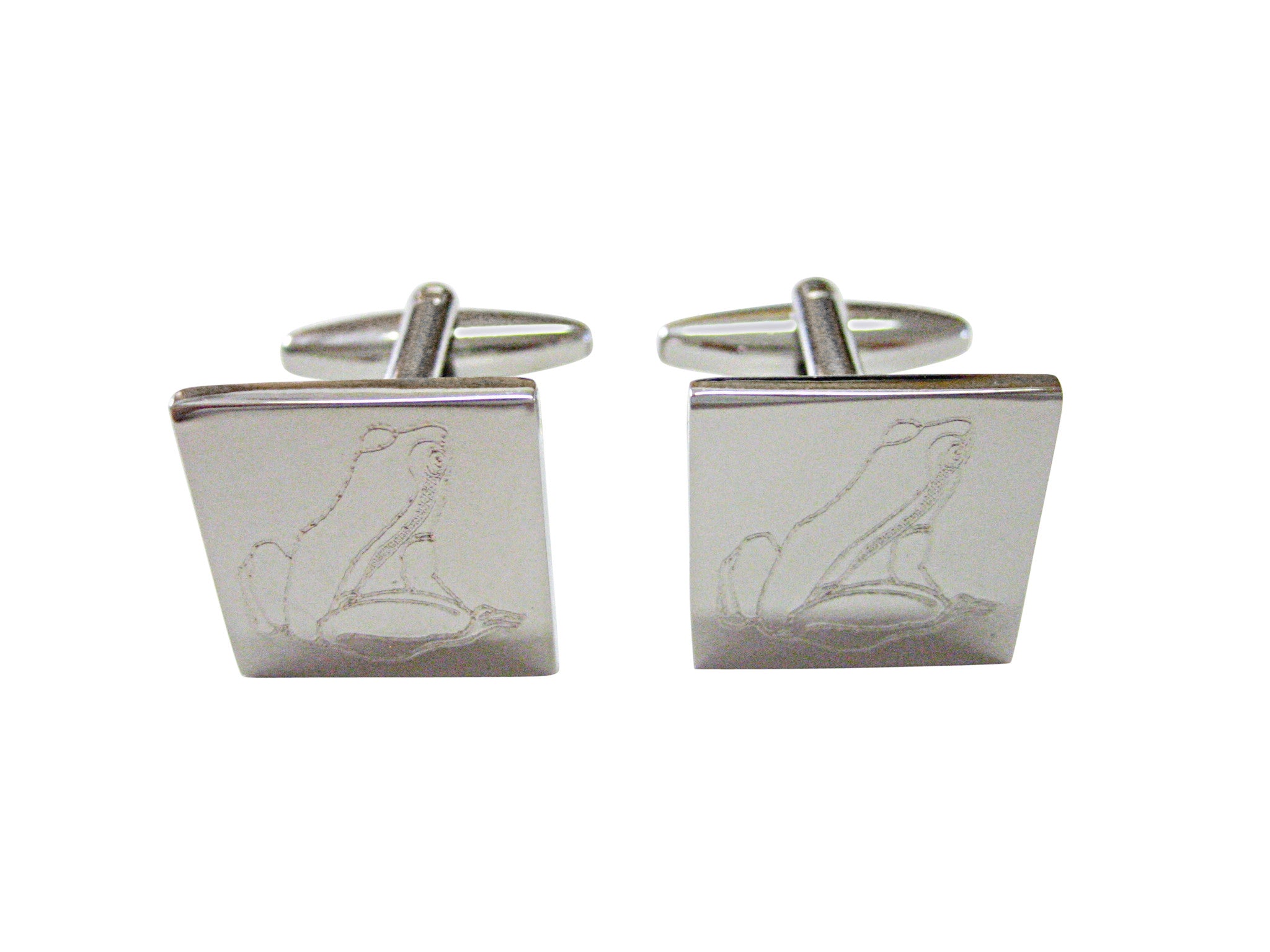Silver Toned Etched Frog Cufflinks